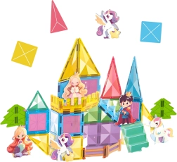 El set es ideal para aprender formas y colores, y para desarrollar la motricidad fina y la paciencia. También incluye adorables figuras de princesa, príncipe y unicornios para aún más escenarios de juego. Todo está fabricado con materiales seguros y resistentes, adecuados para niños a partir de 3 años.