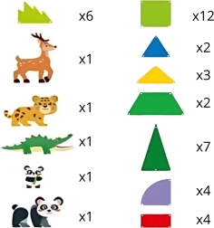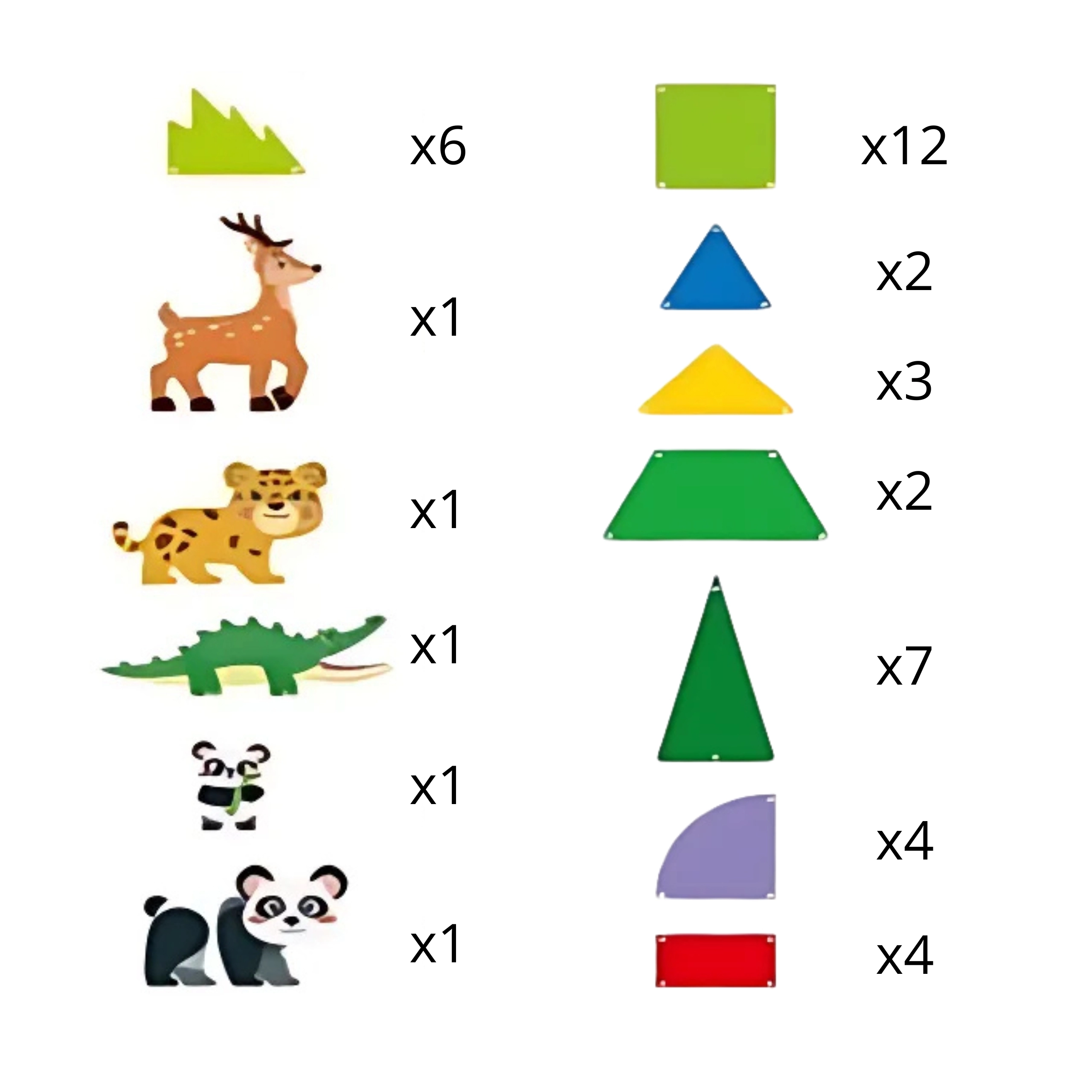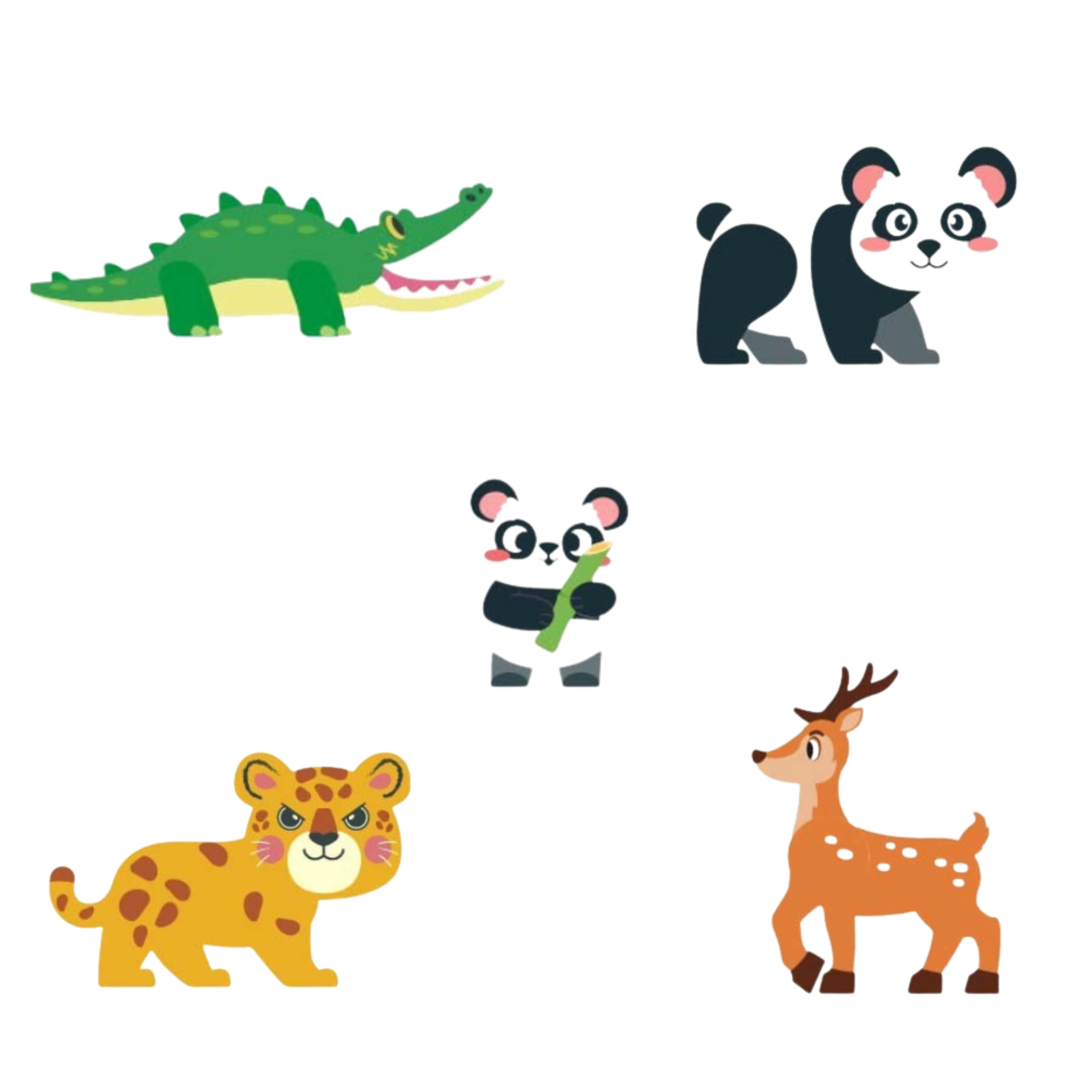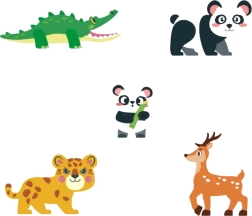 - Figuras de animales: 2× panda, leopardo, ciervo, cocodrilo