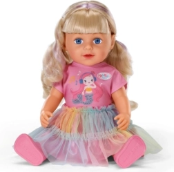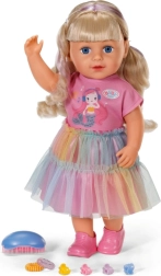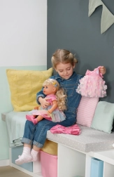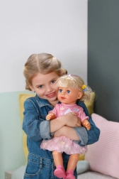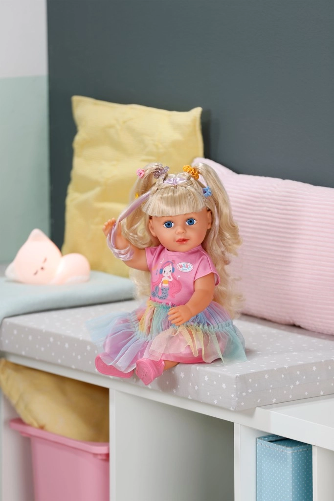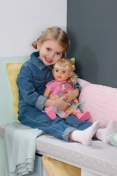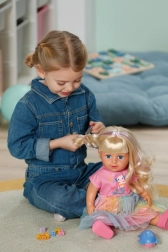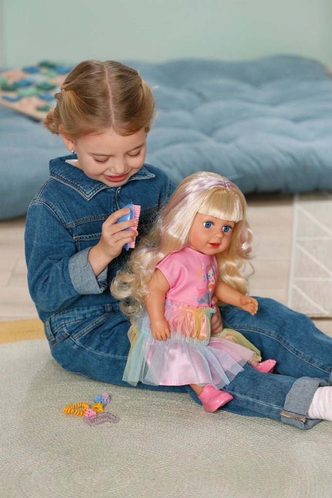 La muñeca BABY born Carla es la compañera ideal para el juego creativo y las pruebas de peinados. El cabello largo de nailon se peina y se estiliza fácilmente, y con el cepillo, las gomas y las pinzas incluidas podrás crear infinidad de peinados. Su aspecto realista, las extremidades móviles y la posibilidad de mantenerse de pie fomentan la imaginación y el juego de roles.