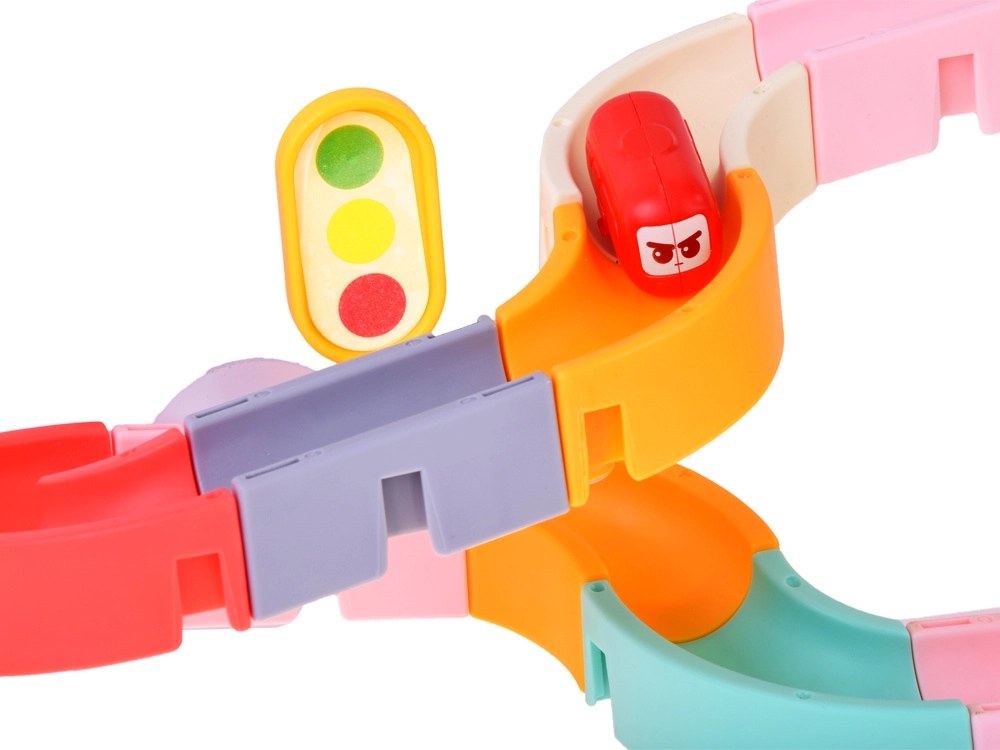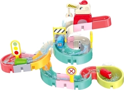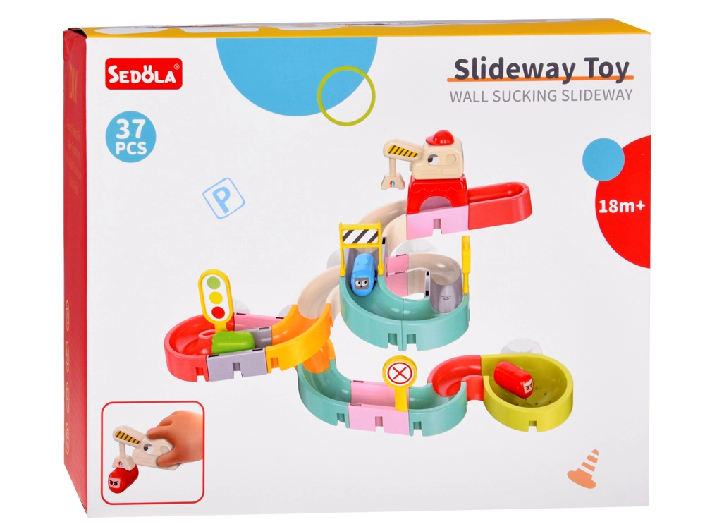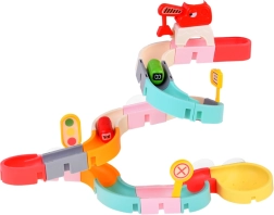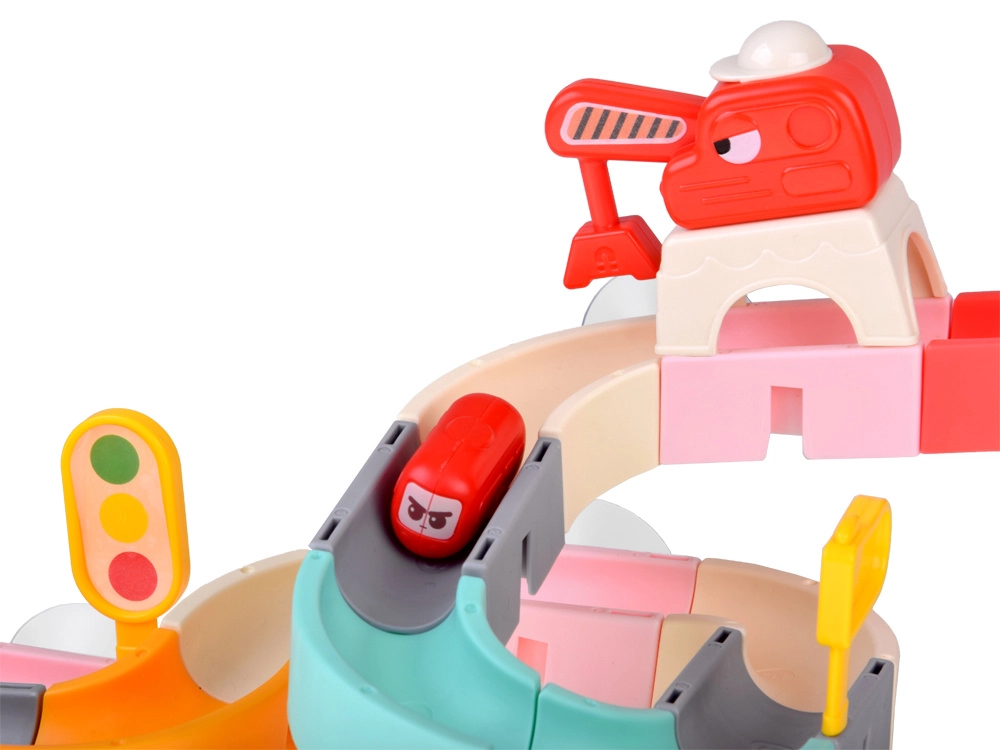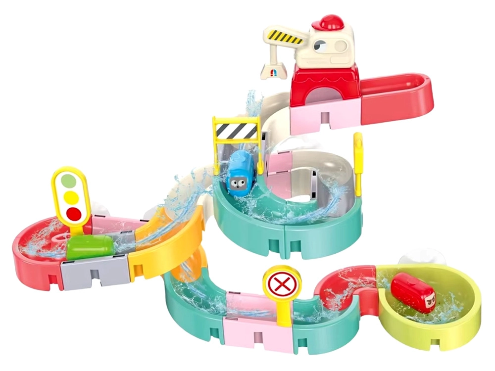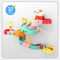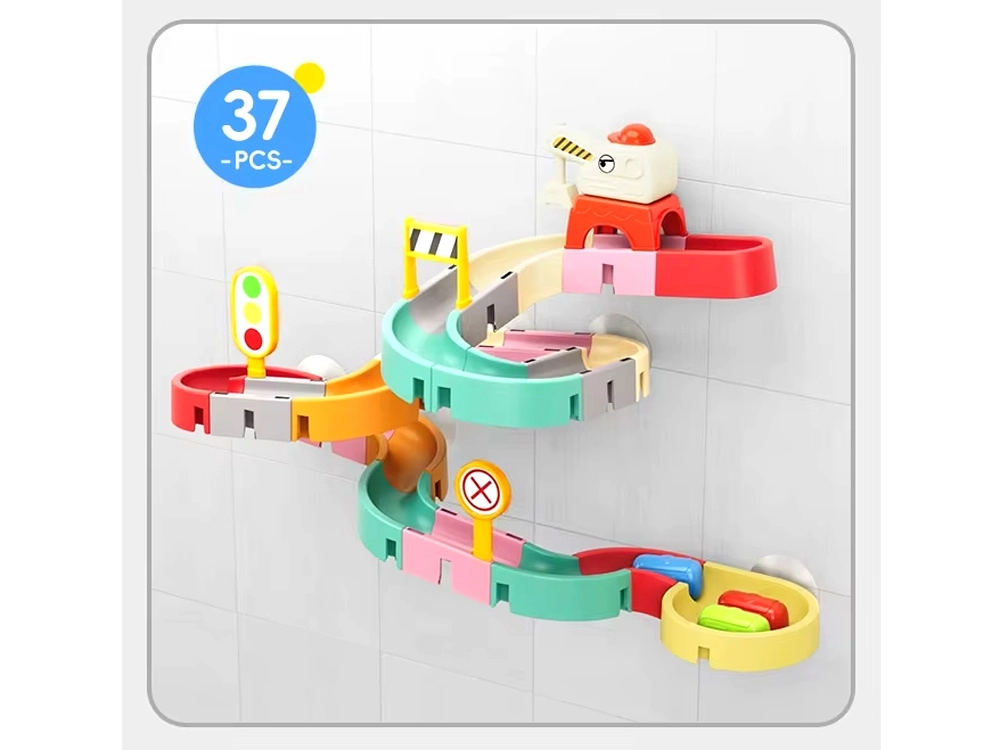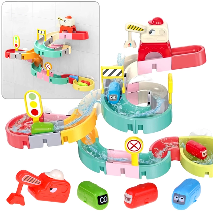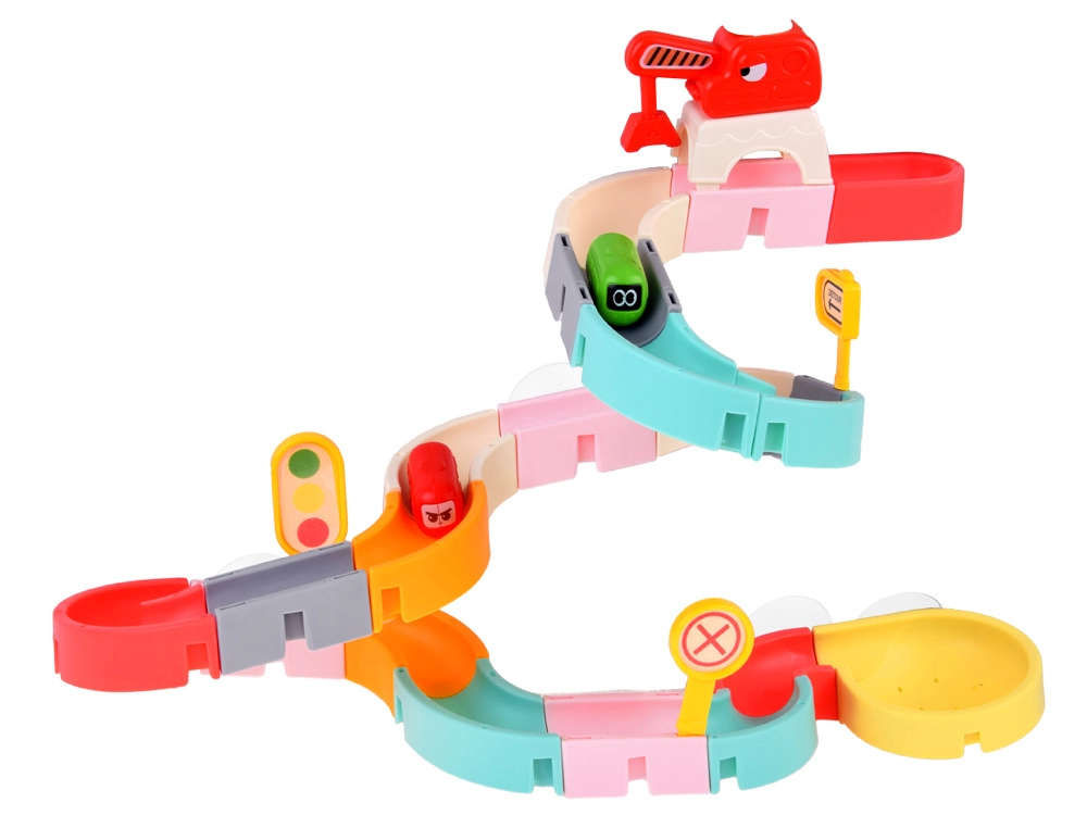 Este creativo set para el baño cautiva a los niños con piezas de colores, temática de tráfico y efectos de agua. Con 37 componentes podrás montar canales sinuosos y descensos por los que los cochecitos en cápsula flotan y ruedan con ayuda del agua. Las ventosas de silicona mantienen los elementos firmes en superficies lisas y el final con colador crea una divertida ducha de agua.