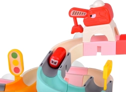 Incluye una grúa magnética con gancho, señales acompañantes y cochecitos “tipo judía” con expresiones simpáticas. Al construir y jugar, los niños practican la motricidad fina, la coordinación ojo-mano, la imaginación espacial y la comprensión de causa y efecto.