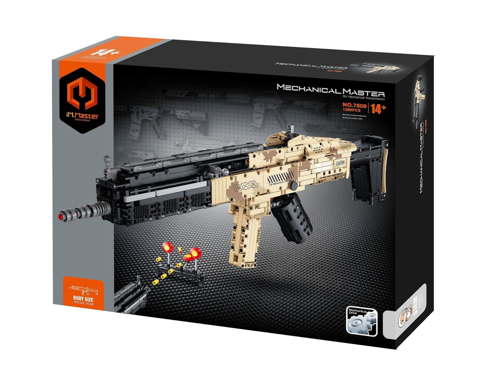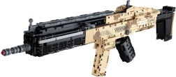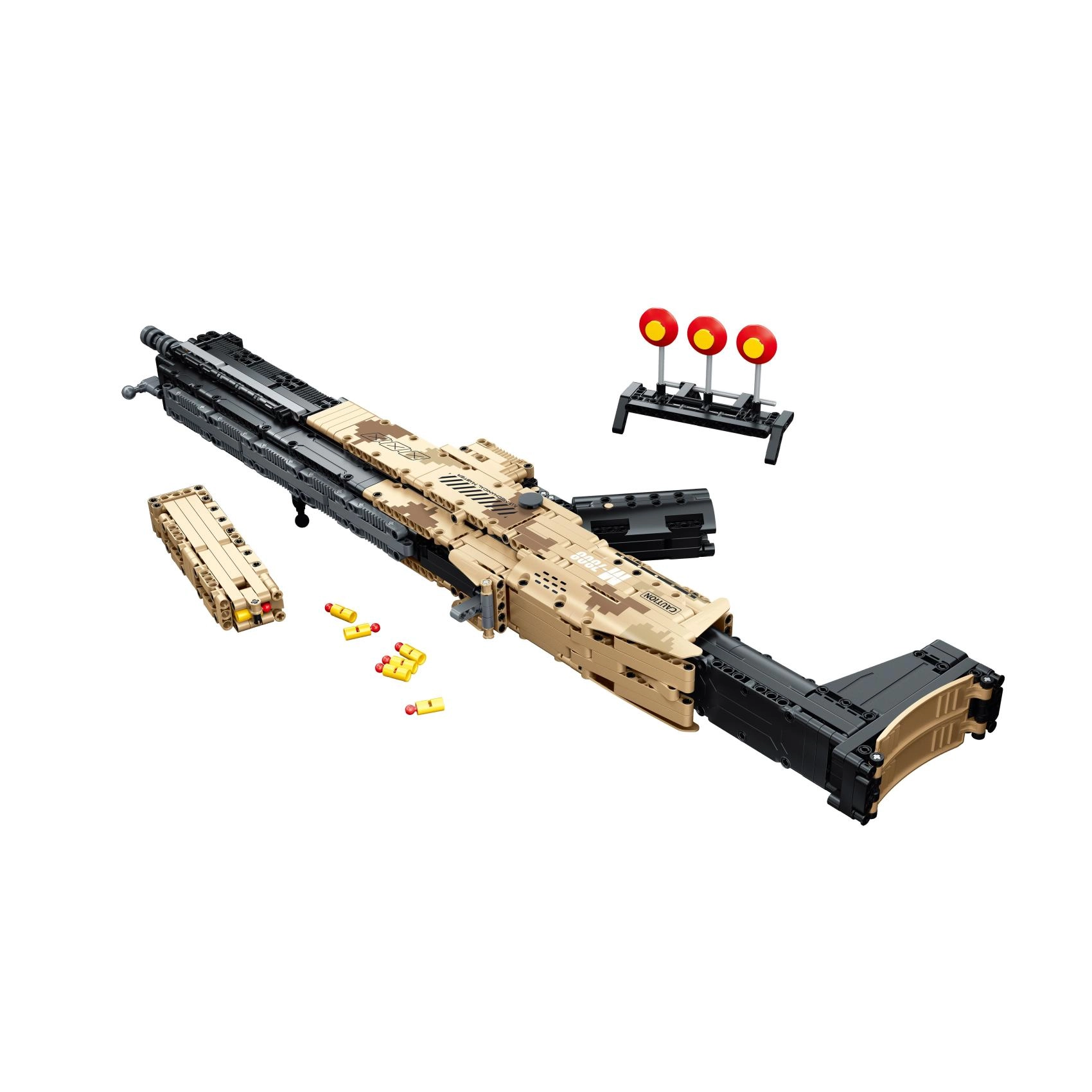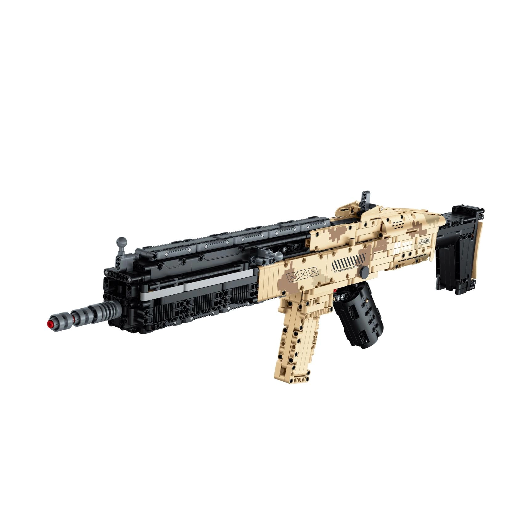 Este completo kit de construcción encantará a todos los aficionados a los modelos técnicos. El fusil automático realista, inspirado en armas tácticas, tiene una construcción detallada con elementos auténticos como cargador, cañón y culata. Gracias a su mecánica bien pensada, disfrutarás de partes móviles y de una simulación de disparo con proyectiles seguros.