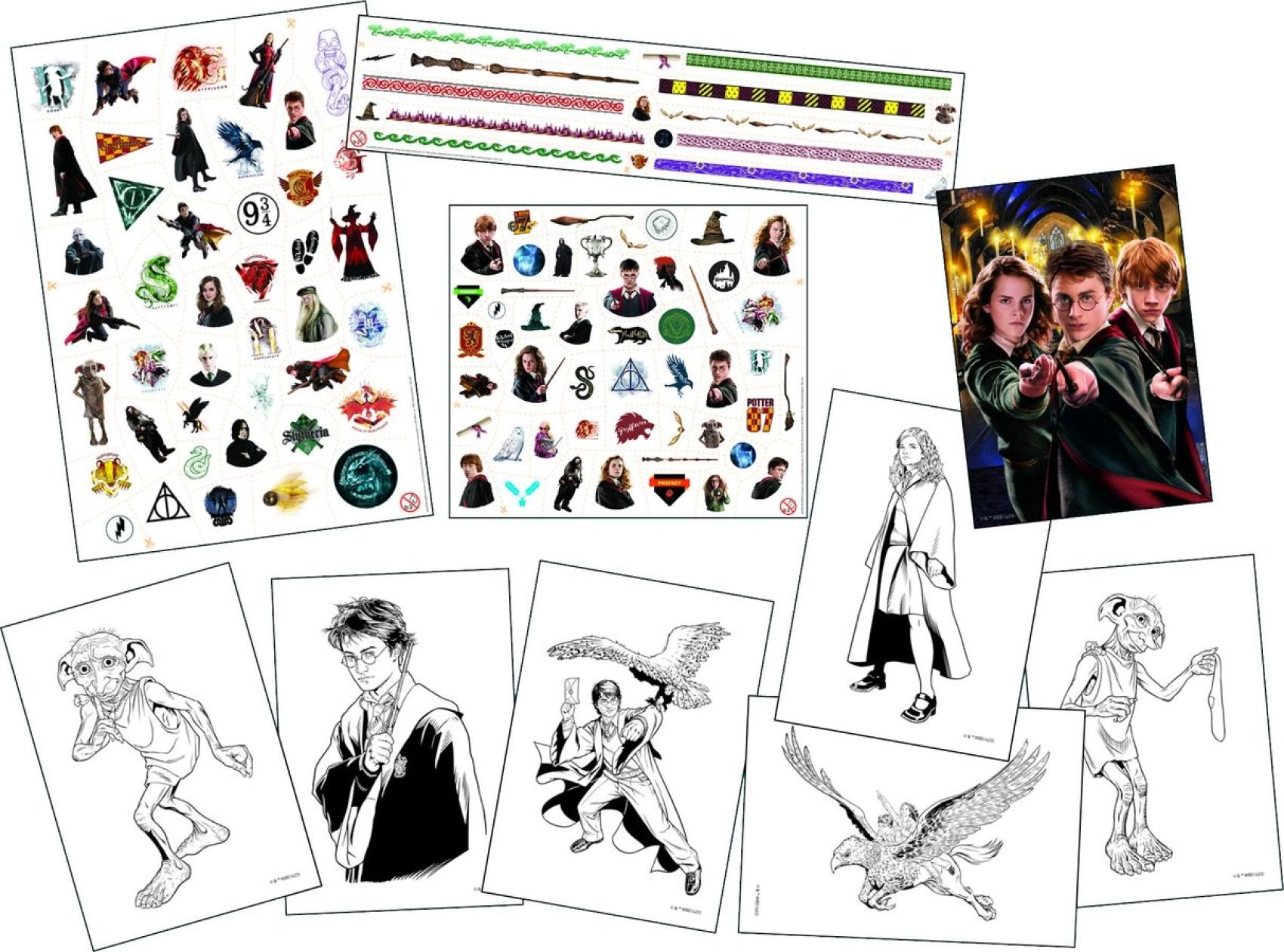 Descubre un divertido set creativo para fans del mundo mágico: más de 100 tatuajes temporales a color de distintos tamaños y motivos, complementados con un cuaderno de dibujo y para colorear. Aplicación sencilla, colores vivos y diversión perfecta para fiestas y tiempo libre para niños y adultos.