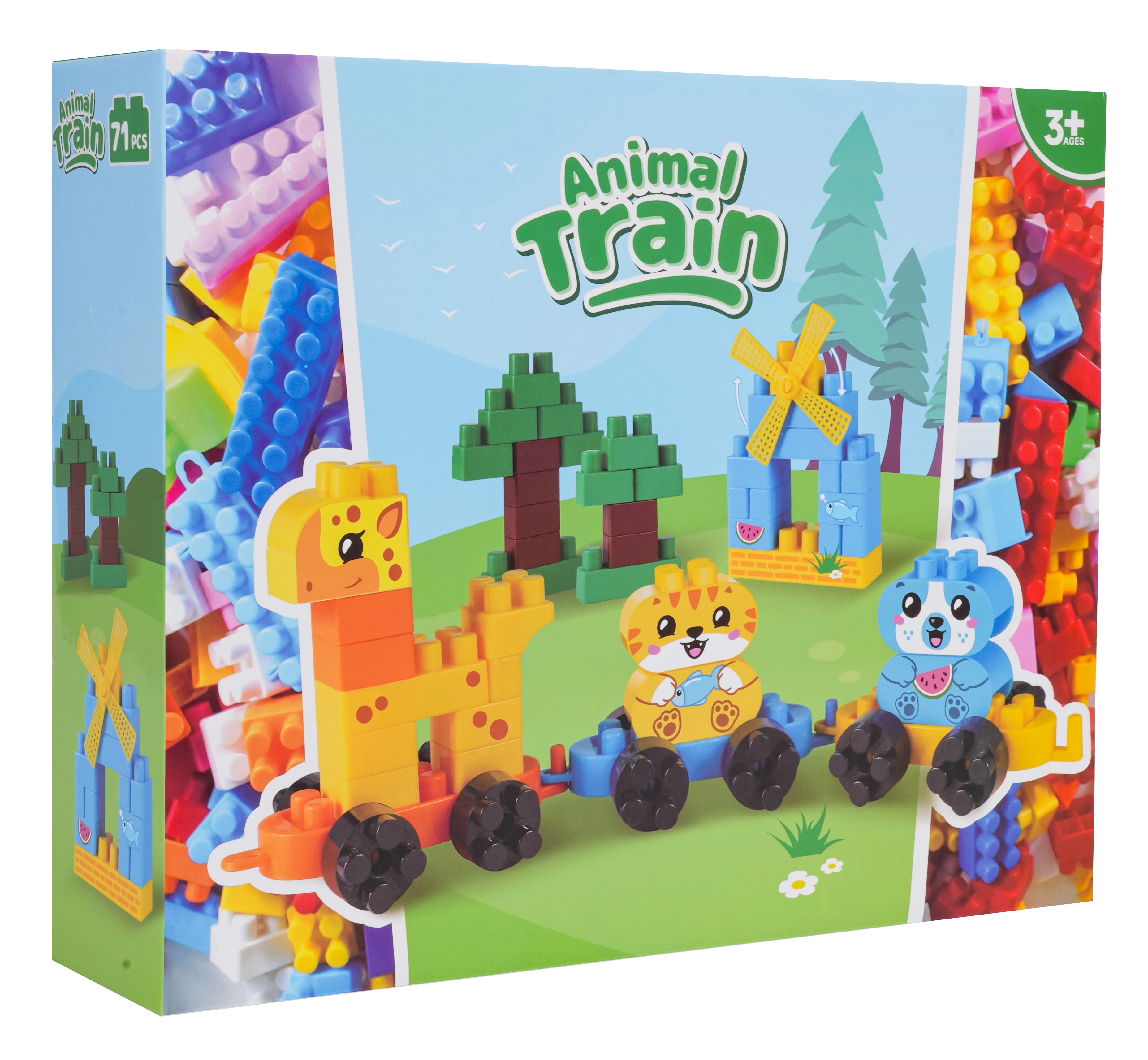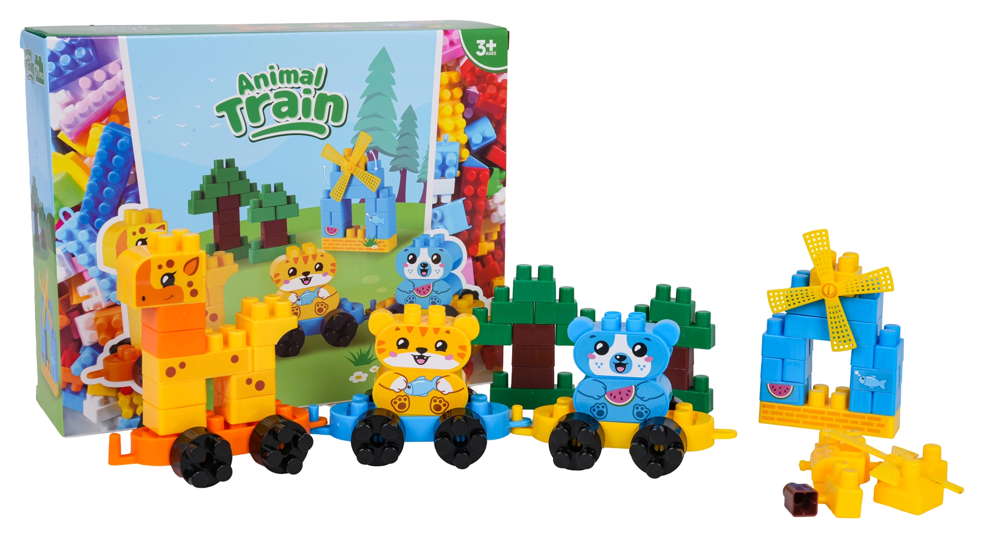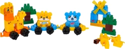 Descubre un gran set de bloques de construcción de colores con los que los niños pueden montar fácilmente adorables animalitos sobre chasis, árboles y un pequeño molino. Une los distintos vagones y crea un trenecito de animales de arrastre que realmente se mueve gracias a sus ruedas. El set está diseñado para pequeños constructores a partir de 3 años: las piezas son más grandes, agradables al tacto y fáciles de ensamblar.