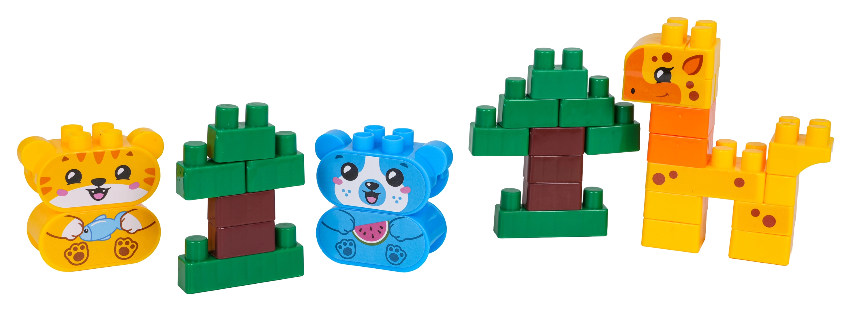 Los bloques fomentan el desarrollo de la imaginación, la coordinación ojo-mano y el juego creativo. El paquete incluye también pegatinas decorativas para personalizar el aspecto de los animales y las escenas.