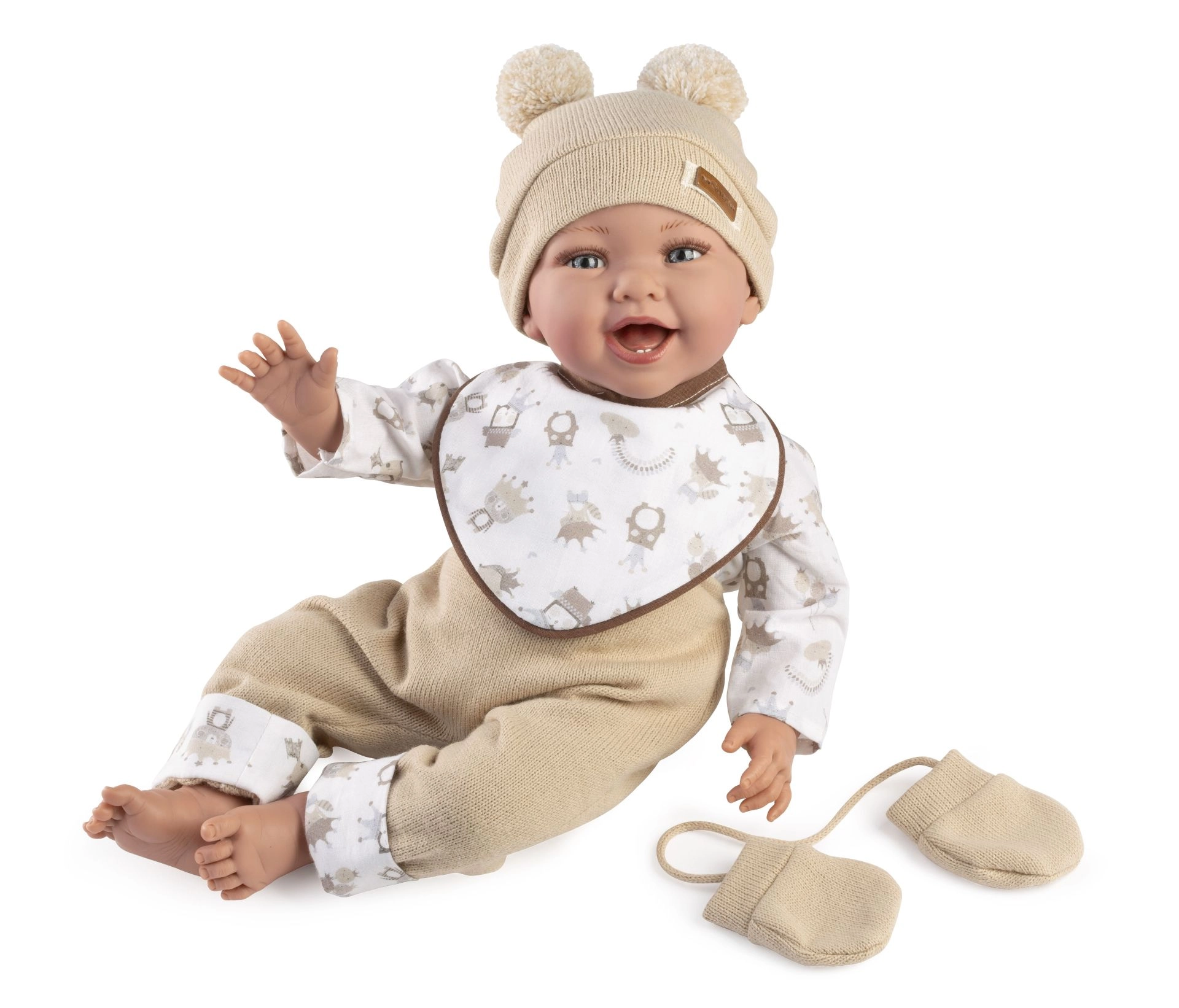 La muñeca OLIVER parece de verdad: su suave sonrisa, las manos y pies de forma realista y la ropa delicada invitan a acurrucarse y jugar a las familias. Gracias a las articulaciones con las que las extremidades están unidas al cuerpo, el bebé es fácilmente articulable y también puede sentarse. El cuerpo de tela blando es muy ligero y agradable al tacto, por lo que se adapta de maravilla incluso a los niños más pequeños.