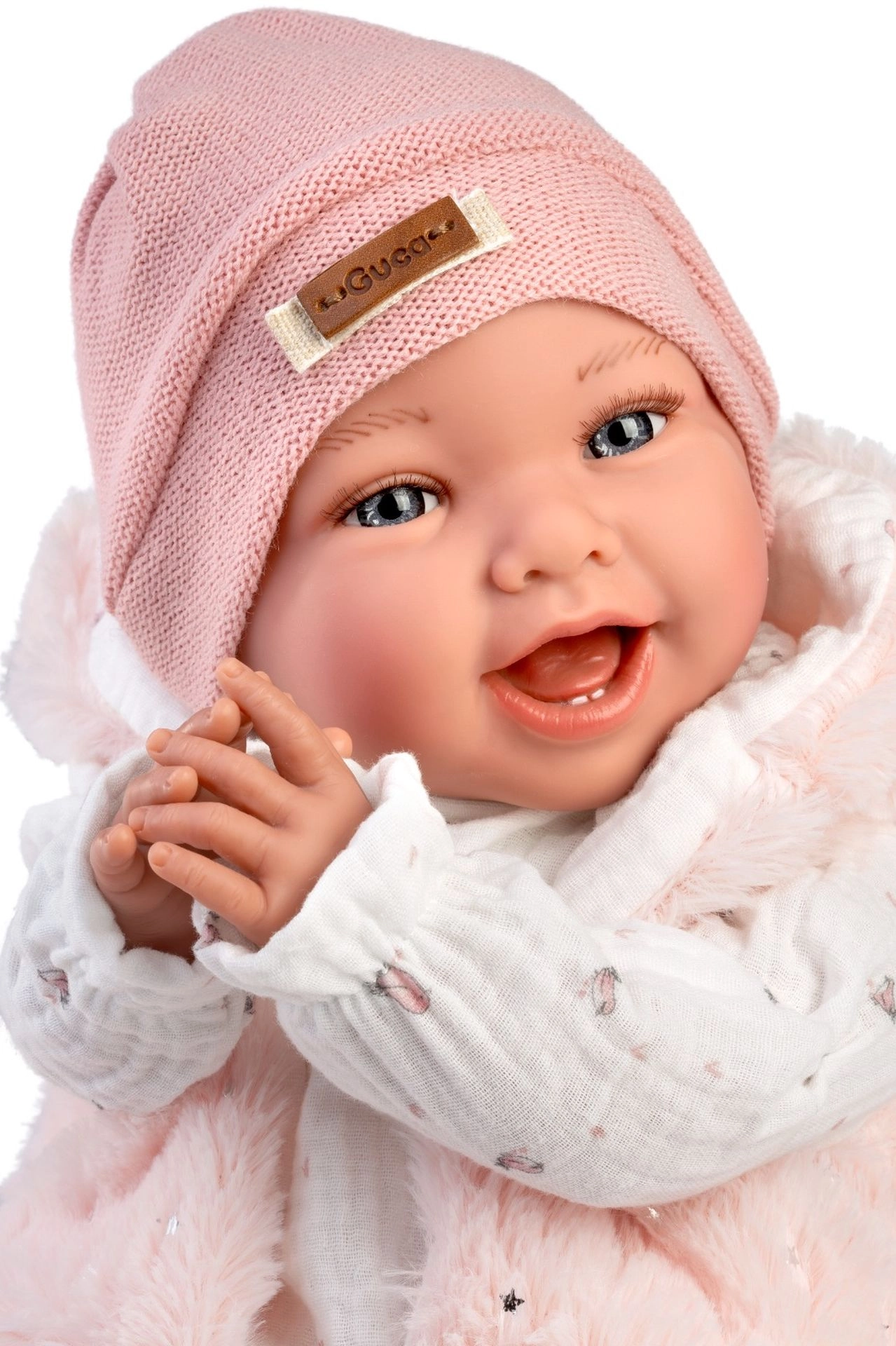 Descubra la magia de la muñeca realista Guca Olivie con cuerpo de tela blando y relleno con peso, que imita fielmente la sensación de un bebé real. Gracias a sus extremidades articuladas también puede sentarse y su cabeza más pesada se mueve de forma natural al manipularla. Una elección excelente para el juego, el desarrollo de la motricidad y la ergoterapia, adecuada para niños a partir de 3 años, personas mayores y personas con necesidades especiales.