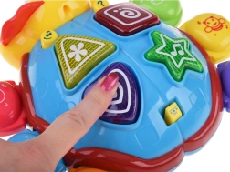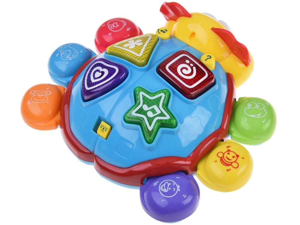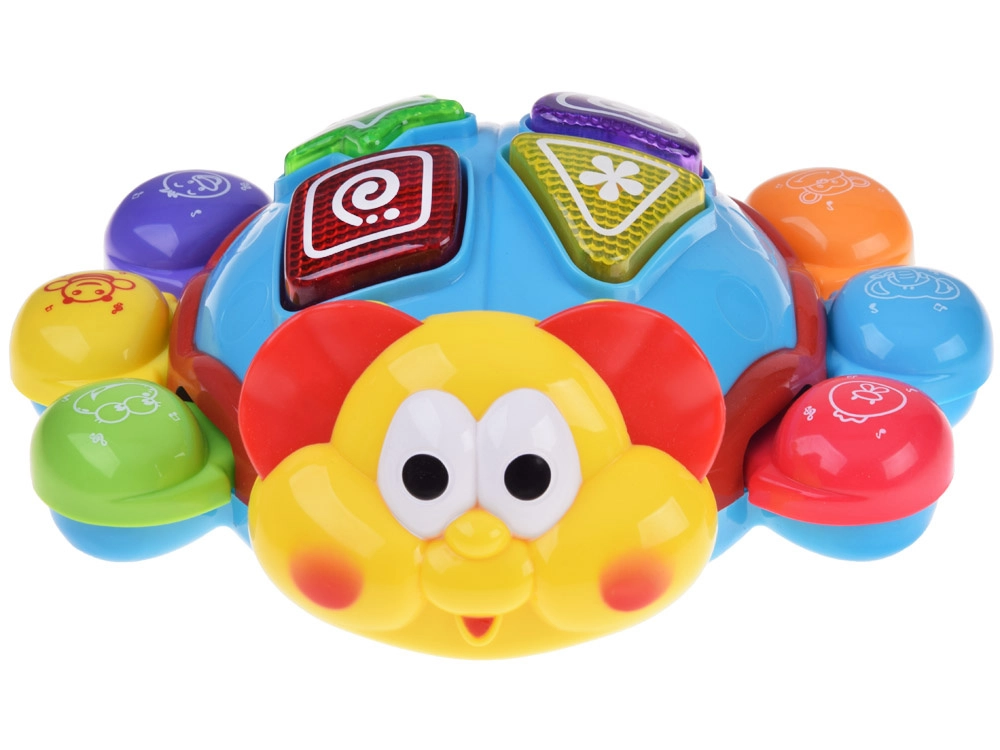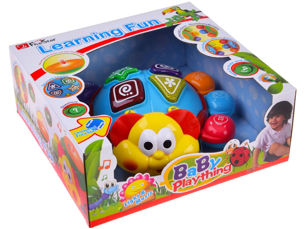 Colorido bichito interactivo que motiva a los niños a gatear y reptar, reproduce melodías alegres, parpadea con lucecitas y gracias a su sensor inteligente de obstáculos cambia de dirección. Al presionar los grandes botones, los niños aprenden colores, animales y el principio de causa–efecto. Juguete ideal para diversión activa y para el desarrollo de la motricidad fina.