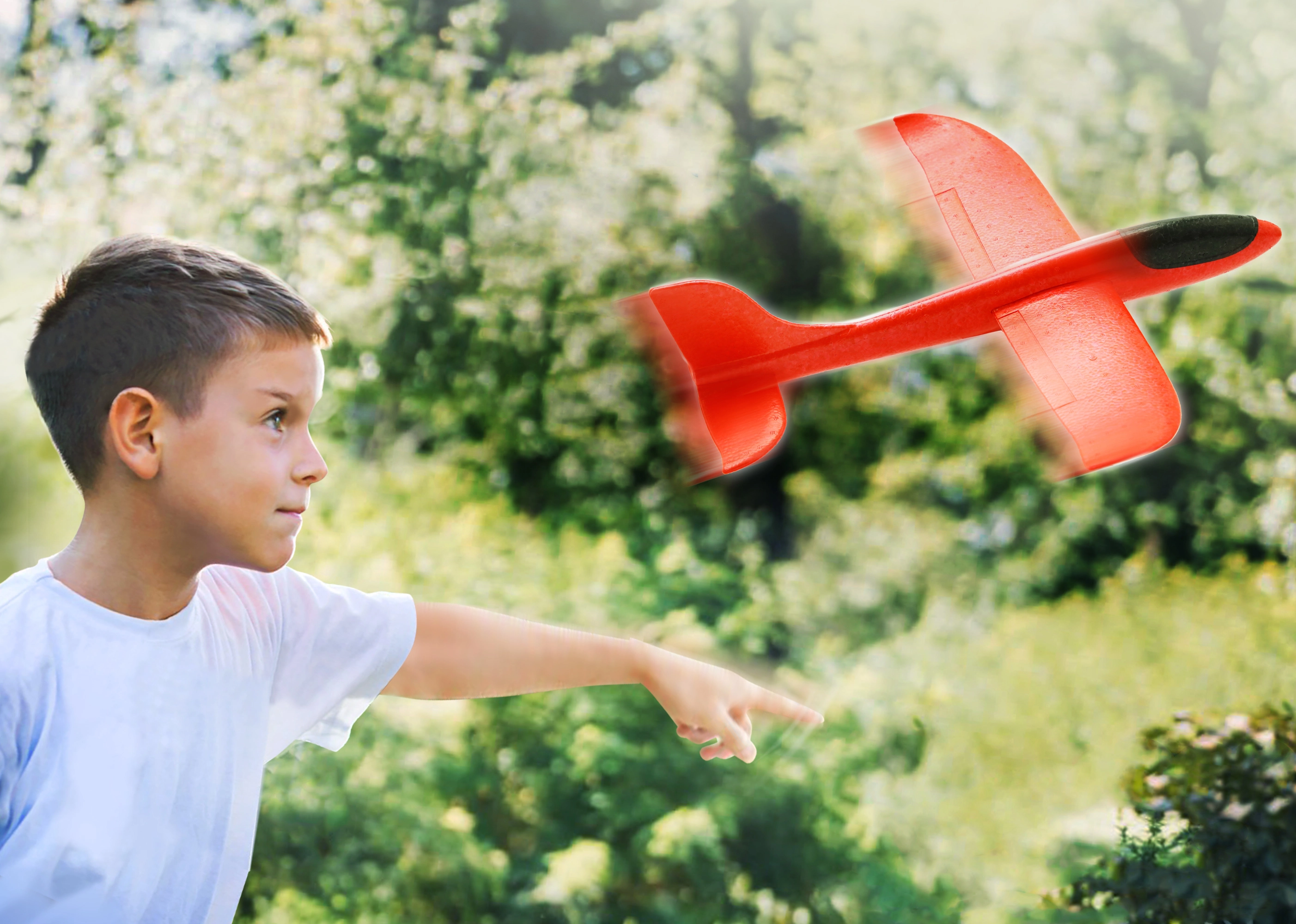 Ideal para el jardín, el parque infantil y las vacaciones. Solo hace falta un lanzamiento, un pequeño ajuste de las superficies de cola y la diversión puede comenzar.
