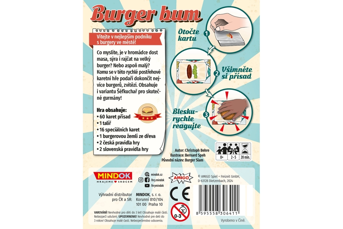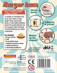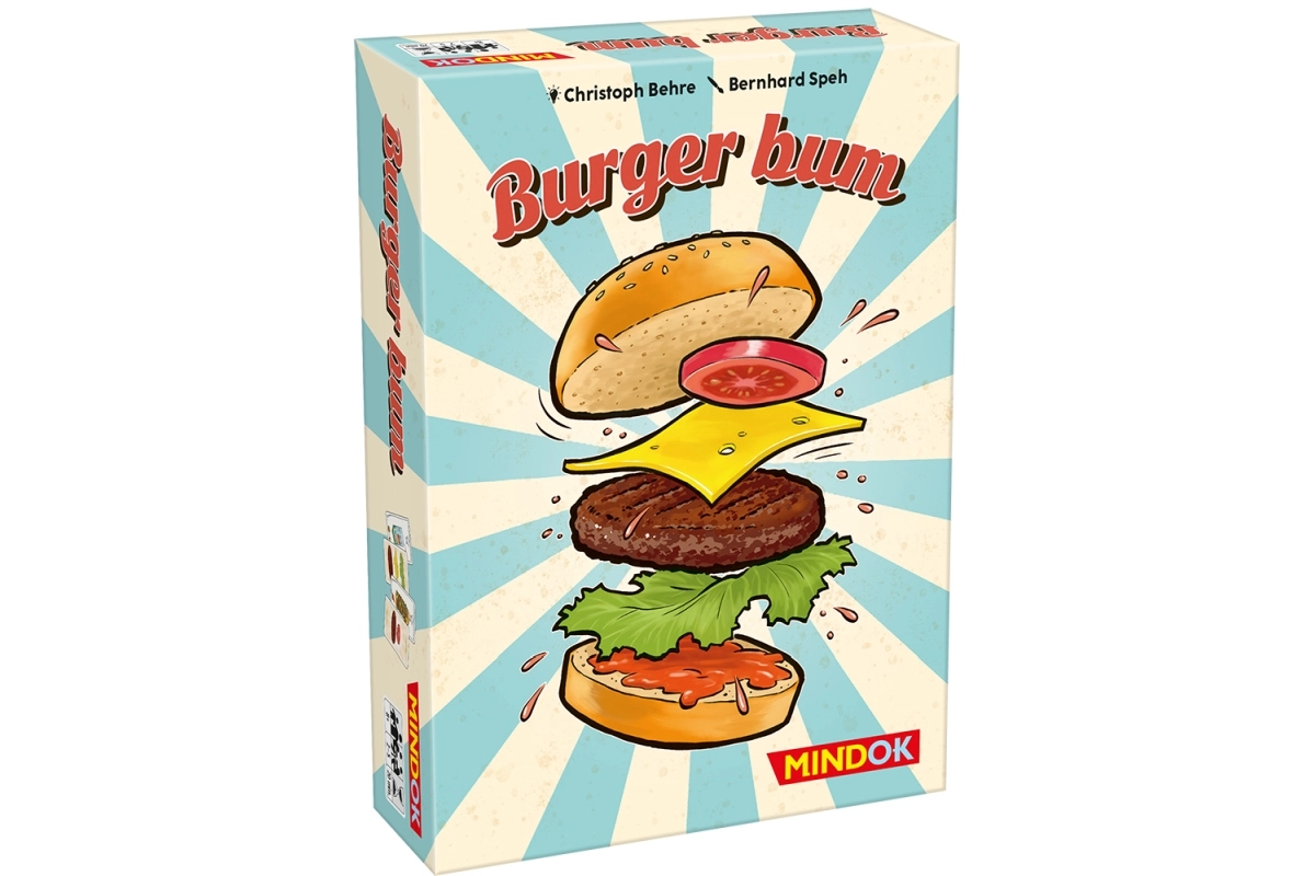 Burger Bum es un dinámico juego de cartas familiar en el que montas sabrosas hamburguesas con cartas de ingredientes. Gana quien tenga más cartas en su mazo al final de la partida: la clave es la reacción rápida, la atención y el timing adecuado para saber cuándo la hamburguesa está lista.