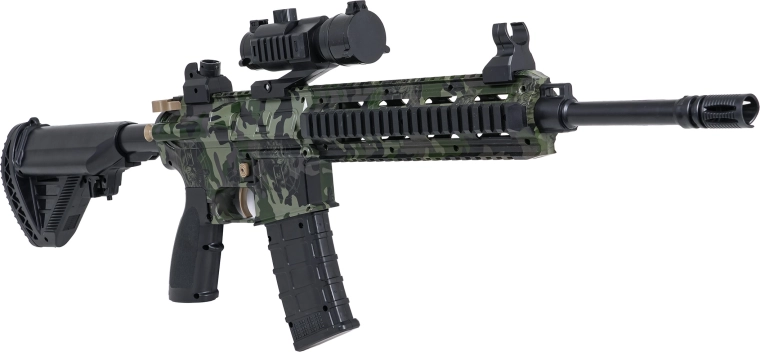 Cambia entre un fuego automático rápido y un modo manual preciso según la situación. Una opción versátil para entrenamiento y batallas de acción.