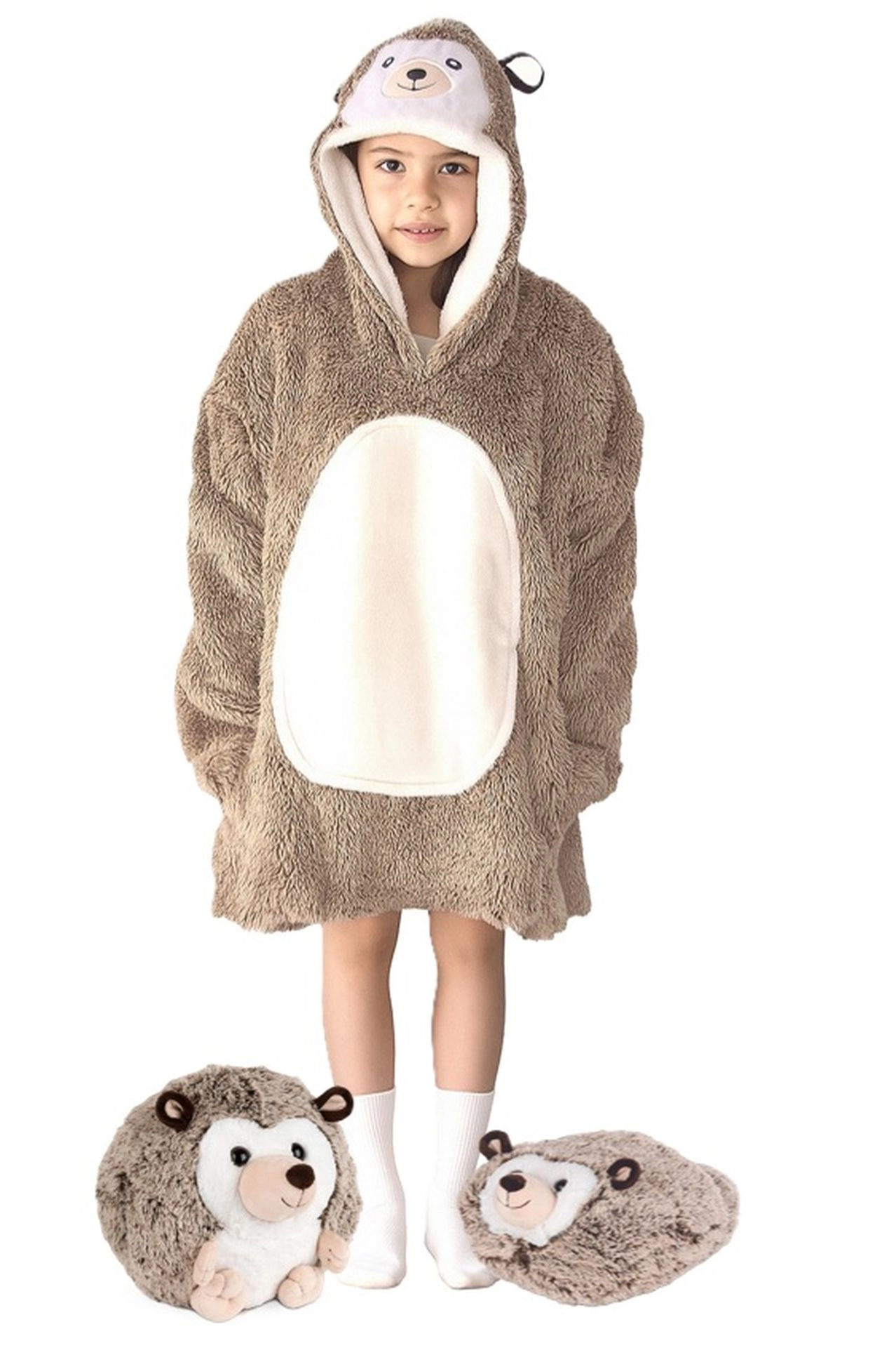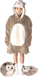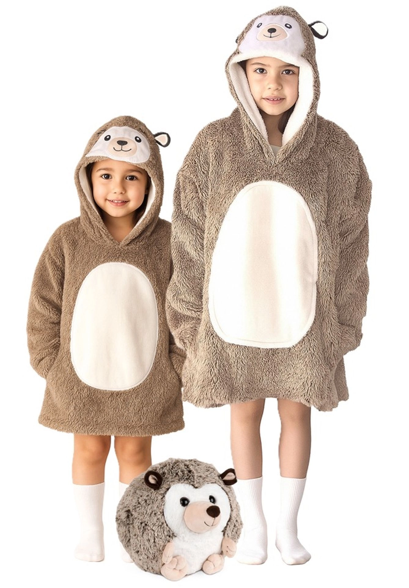 Esta cálida manta-sudadera COZY NOXXIEZ con un encantador estilo de erizo combina la comodidad de una manta con la practicidad de una sudadera. El interior de suave forro sherpa y la capa exterior de franela garantizan que los niños estén abrigados al ver la TV, jugar o descansar.