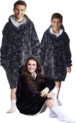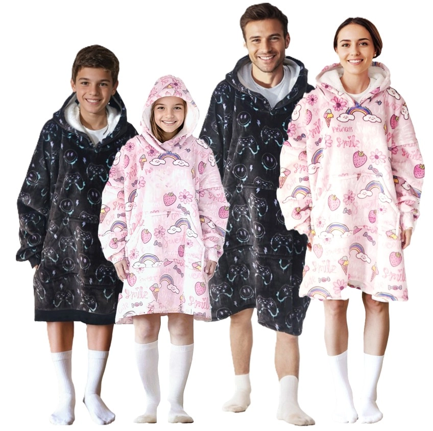 Detalles prácticos como la capucha grande y el bolsillo tipo canguro mantienen la cabeza y las manos calientes. La manta-sudadera tiene una talla infantil universal con largo hasta la rodilla y es adecuada para niños de 7 a 12 años. El mantenimiento sencillo en lavadora facilita el uso diario.