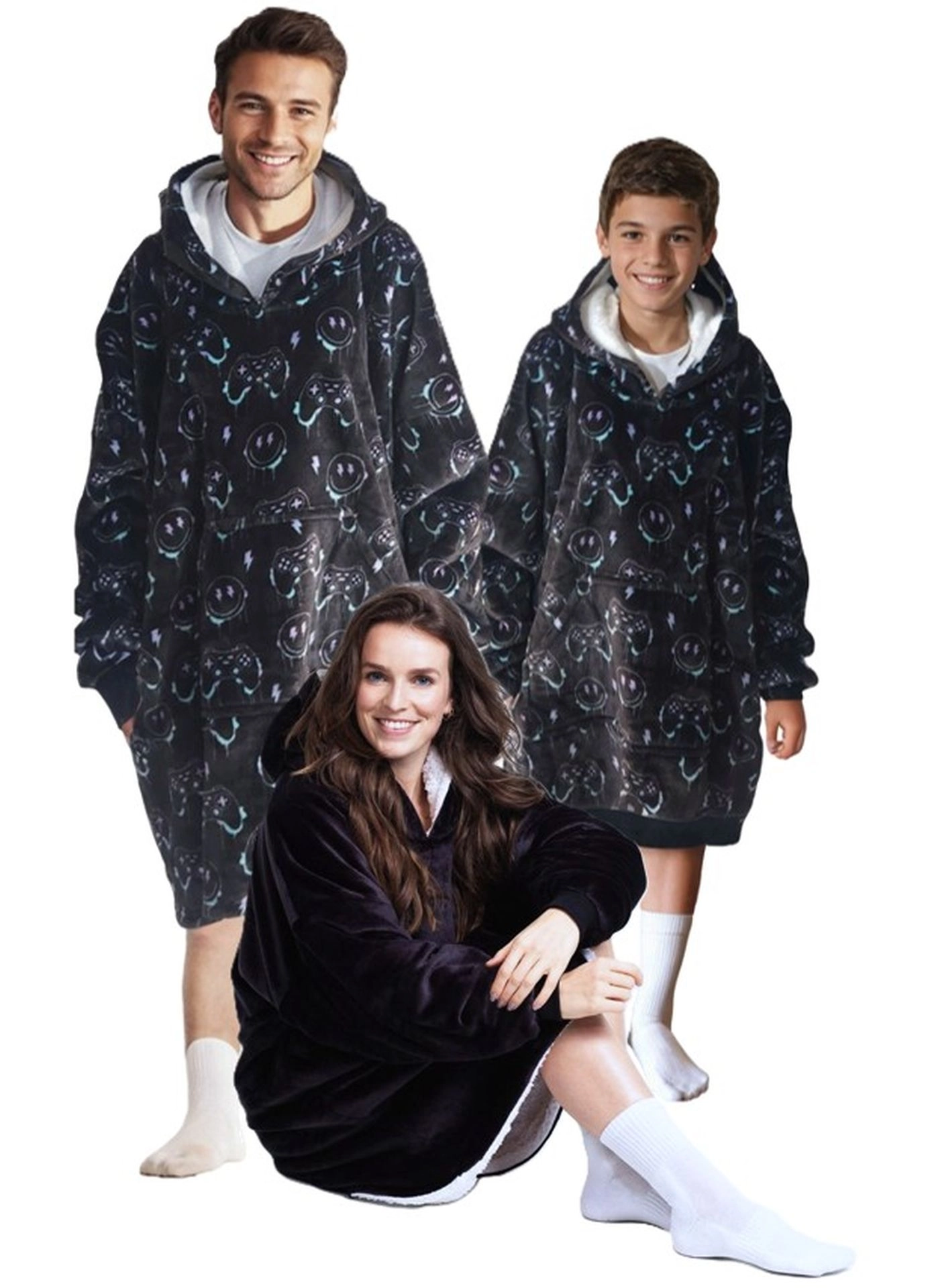 La cálida manta sudadera con estampado gamer está hecha para momentos de descanso. El exterior de franela es agradable y suave al tacto, mientras que la capa interior de sherpa fleece aporta un calor esponjoso sin peso innecesario. Gracias al corte oversize universal, no limita el movimiento y queda genial tanto a adolescentes como a adultos.