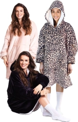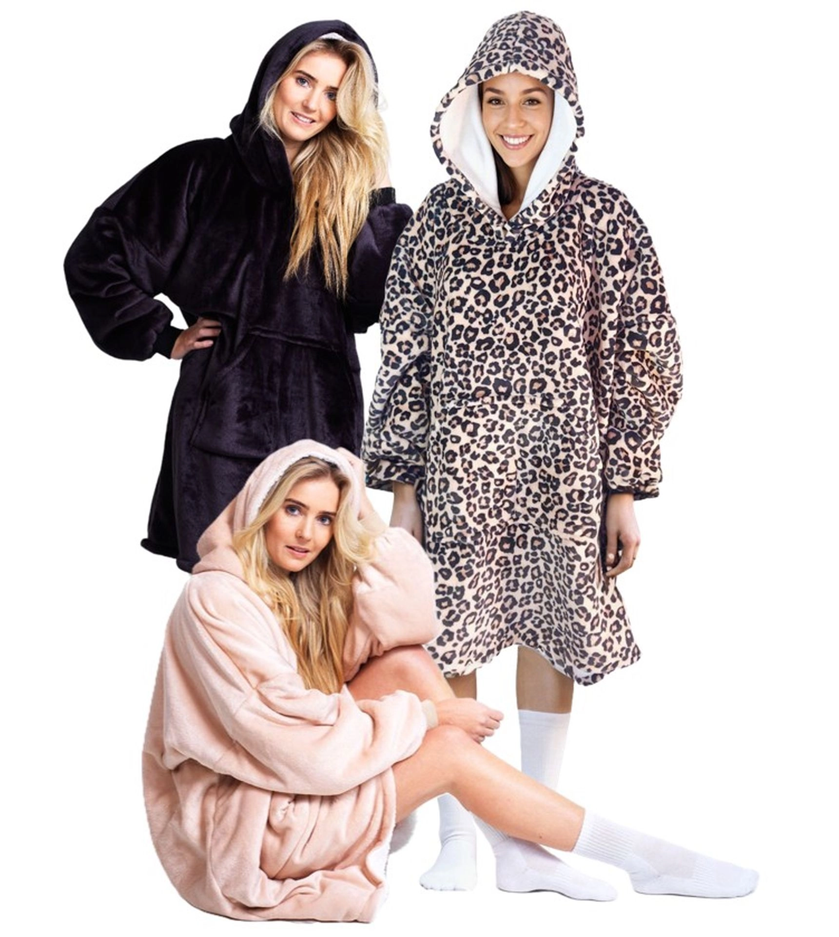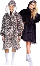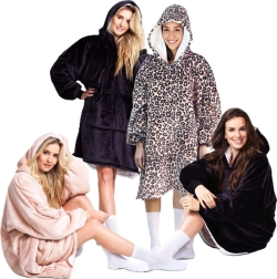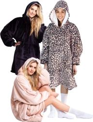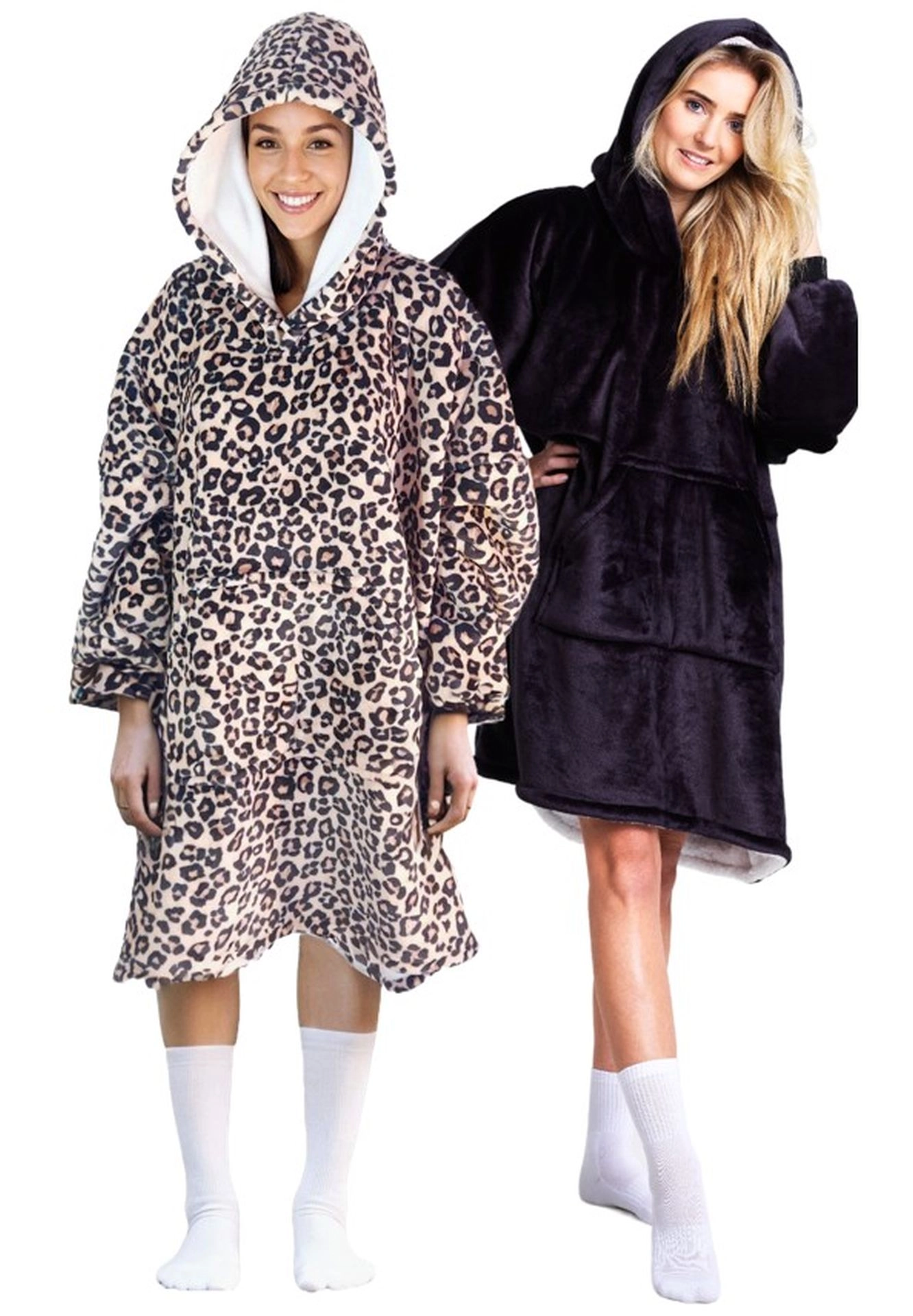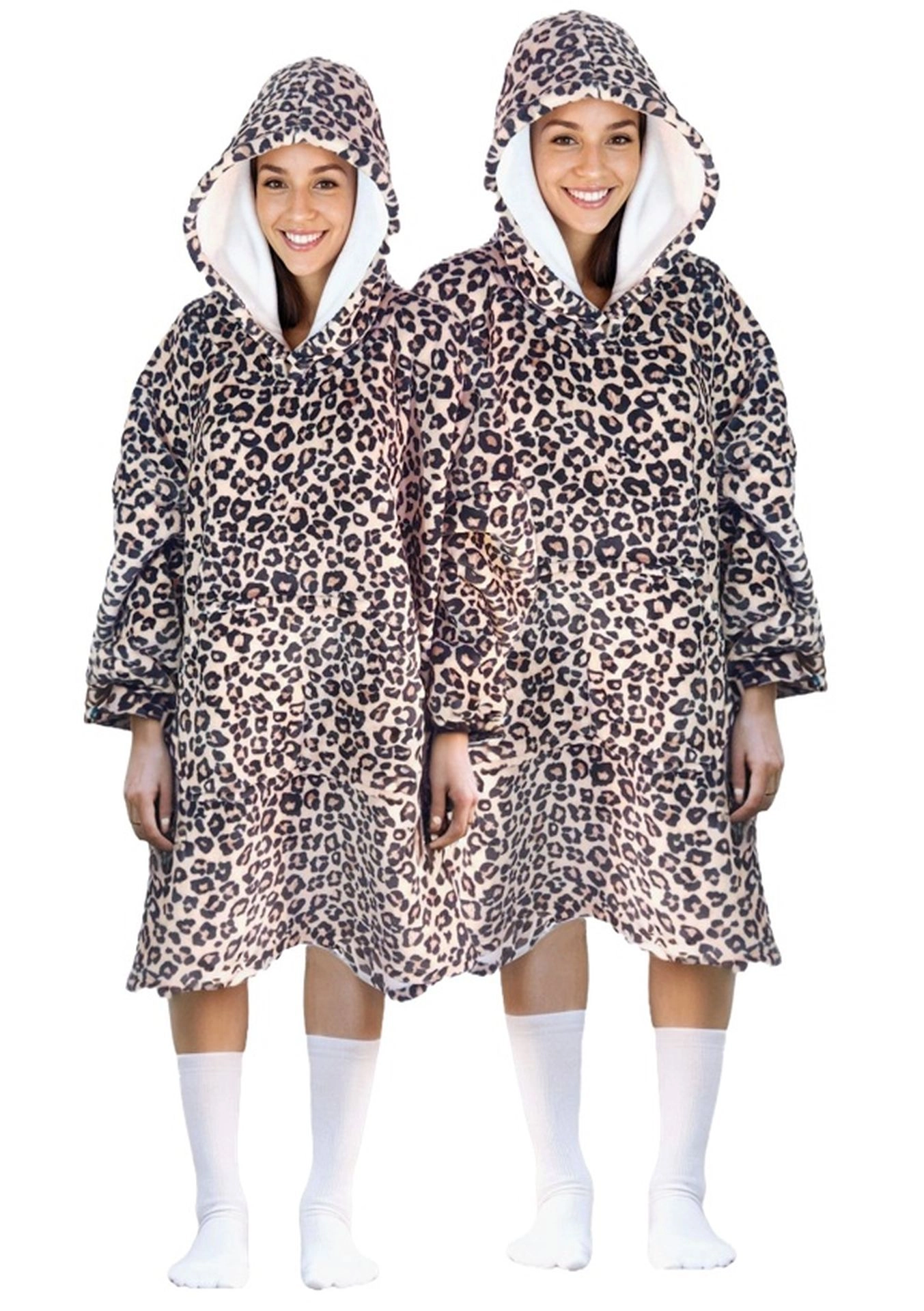 Envuélvete en la máxima comodidad: esta manta sudadera oversize con capucha combina un exterior de suave franela y cálido forro sherpa en el interior. Gracias a su gran bolsillo delantero, corte holgado y longitud hasta la rodilla, es ideal para descansar en casa, trabajar en el ordenador y sentadas al aire libre. El elegante estampado de leopardo añade un toque de estilo a tu relax.