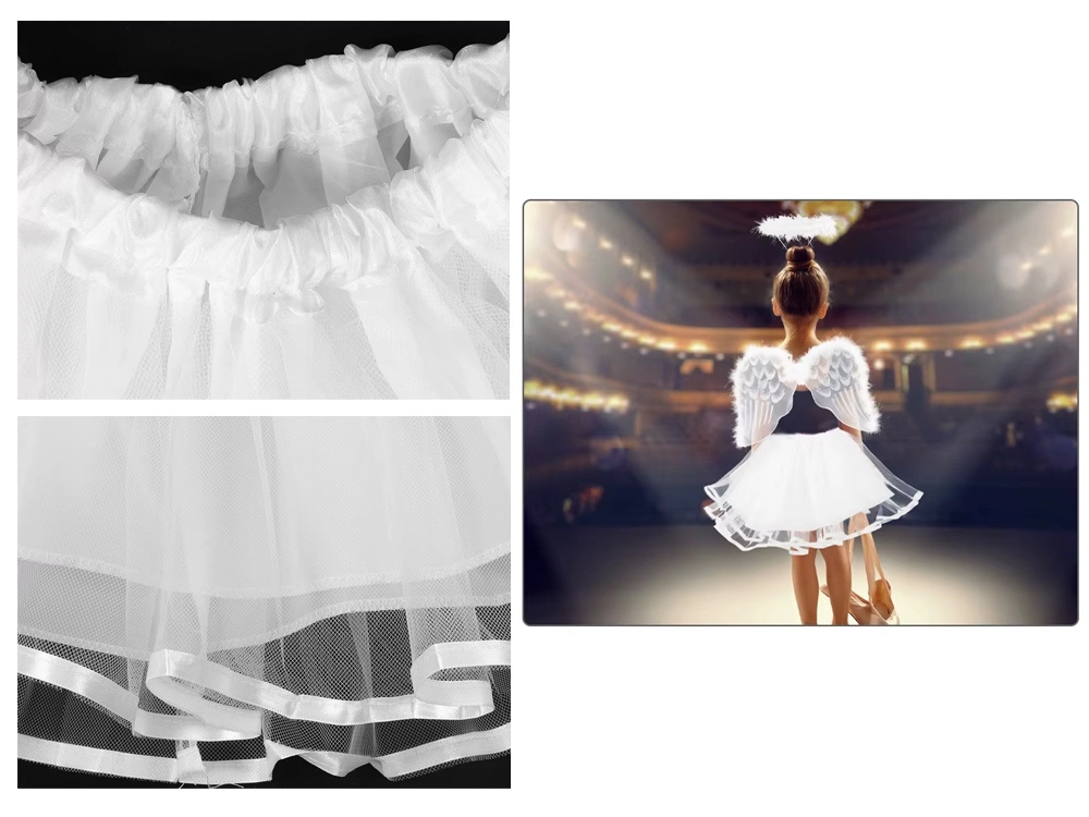 La falda de tul multicapa es ligera y aireada. La cintura elástica se adapta fácilmente: aproximadamente 18–30 cm de contorno, longitud de la falda aprox. 32 cm. Perfecta para moverse con libertad y ofrecer comodidad durante todo el día.