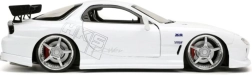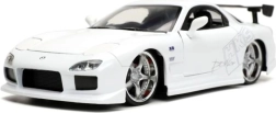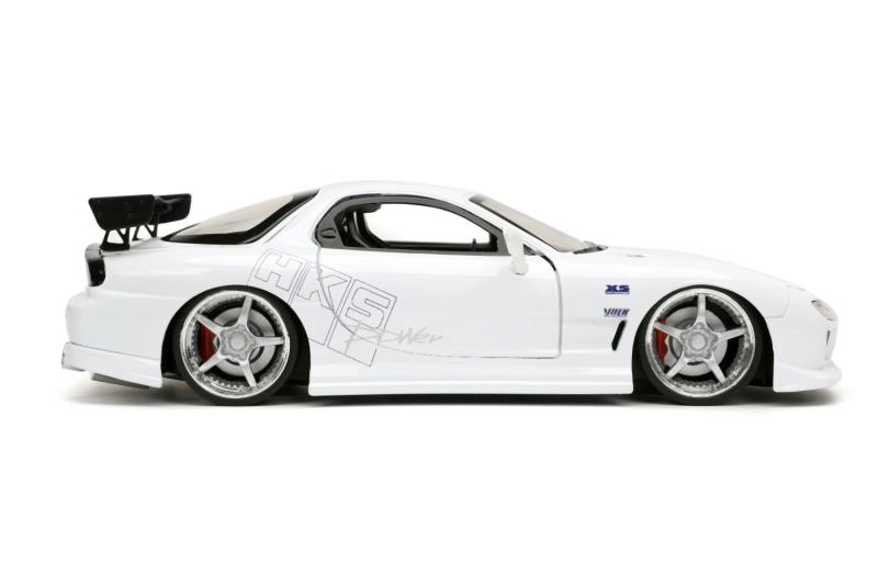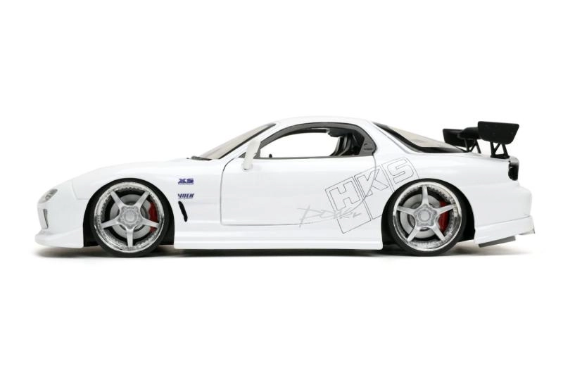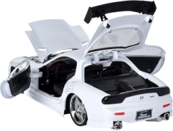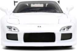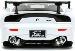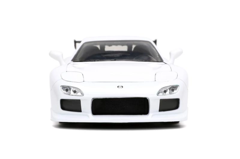 Este modelo realista de la Mazda RX-7 lleva a su vitrina la atmósfera de la película A todo gas. A escala 1:24 destaca por la fidelidad de su carrocería, sus llantas deportivas y su alerón aerodinámico. Gracias a las ruedas de libre rodaje puede moverse con fluidez sobre superficies planas.