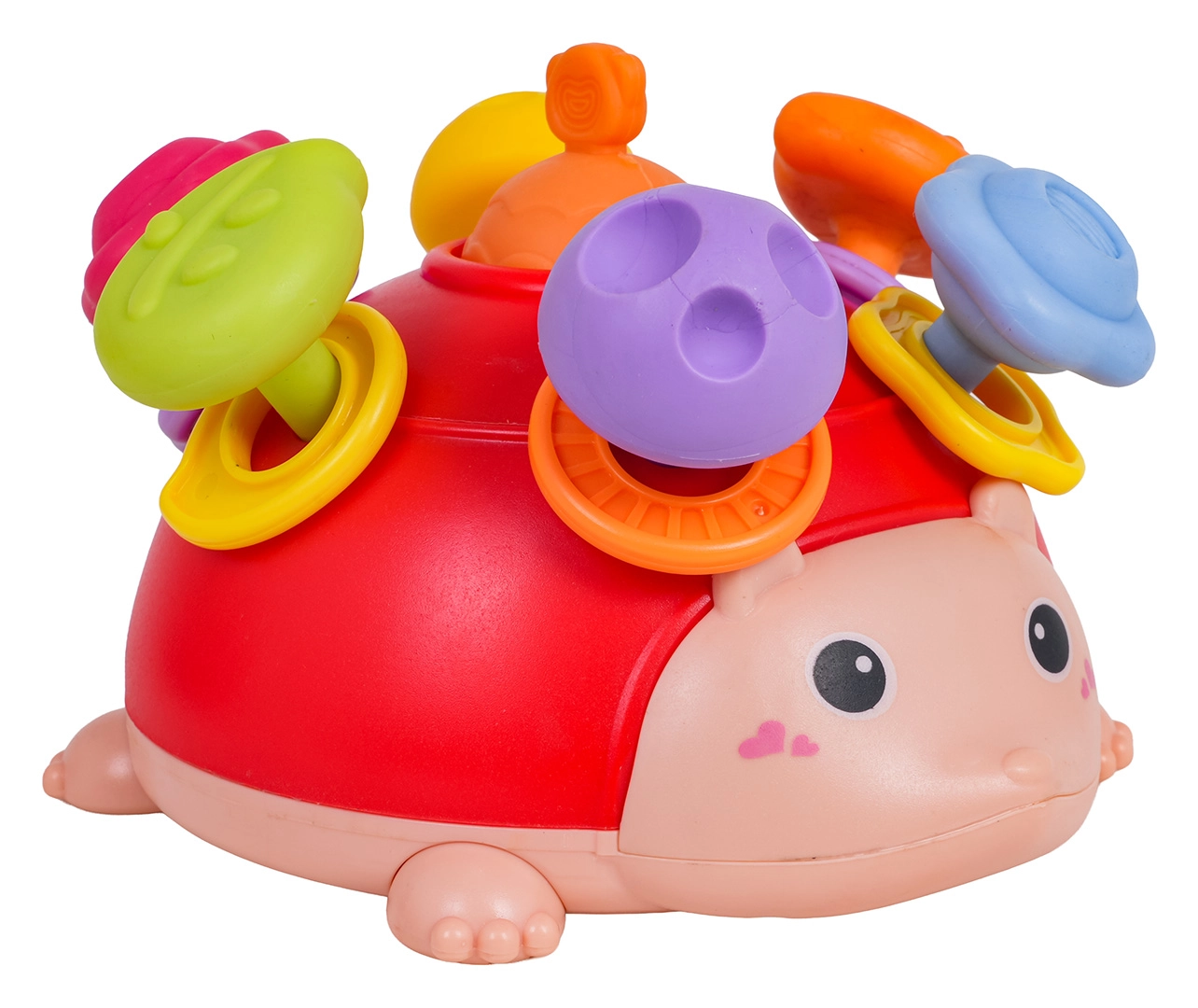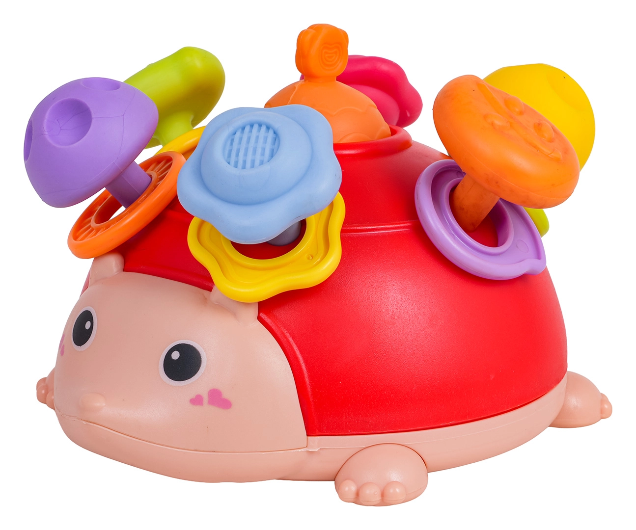 Adorable erizo sensorial para niños a partir de 18 meses que desarrolla la motricidad fina, la percepción sensorial y las habilidades de coordinación. Cuenta con púas blandas adecuadas para el período de dentición, aros de colores con sonajero, botón para presionar y tirar, gomas en brazos y piernas para tirar con seguridad y un spinner en la parte inferior para girar sin fin. Fabricado con materiales seguros sin bordes afilados, en colores vivos que atraen naturalmente a los niños al juego.