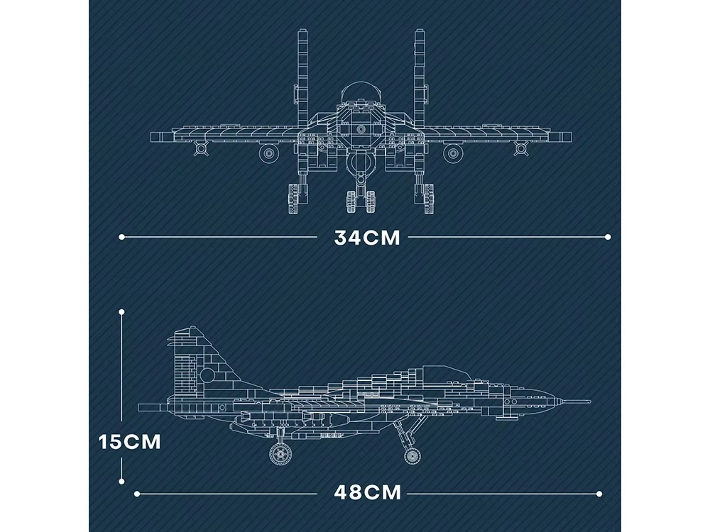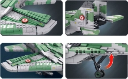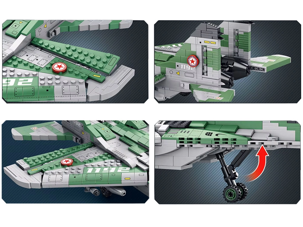 No faltan el tren de aterrizaje extensible y retráctil, la cúpula transparente y la opción de equiparlo con distintos tipos de misiles para un juego dinámico y escenificación de misiones. El set desarrolla habilidades manuales, paciencia y creatividad, a la vez que acerca los fundamentos de la aerodinámica y la ingeniería aeronáutica.