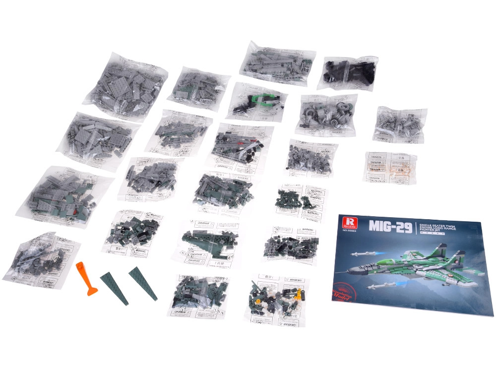 El paquete incluye múltiples bolsas con piezas y un manual claro del MIG‑29. La construcción es fluida y ordenada de principio a fin.