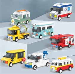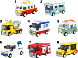 En la oferta hay máquinas populares de la ciudad y la construcción: tranvía, autobús, autobús escolar, ambulancia, camión de bomberos, tractor, hormigonera y autocaravana/van. Cada modelo es un set independiente con instrucciones ilustradas, por lo que también es adecuado para constructores principiantes.