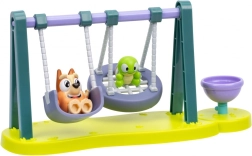 Este colorido mini set de juego con columpios encantará a todos los pequeños fans de BLUEY. Dos columpios funcionales y un cuenco/tiovivo giratorio invitan a infinitas historias en el parque. Los niños pueden sentar a Bingo y a la tortuguita, balancearlos hacia adelante y atrás y luego hacerlos girar hasta que se mareen de alegría.
