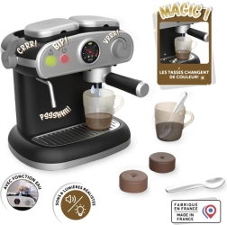 Invita a los niños al mundo de la aromática cafetería con una compacta cafetera espresso infantil que luce y actúa como una de verdad. Los efectos de luz y sonido realistas fomentan la imaginación y desarrollan las habilidades sociales durante el juego. Las tazas mágicas que cambian de color al contacto con agua fría añaden un espectáculo divertido a cada “espresso”.
