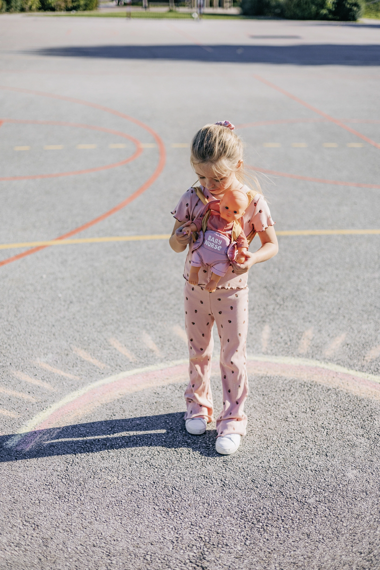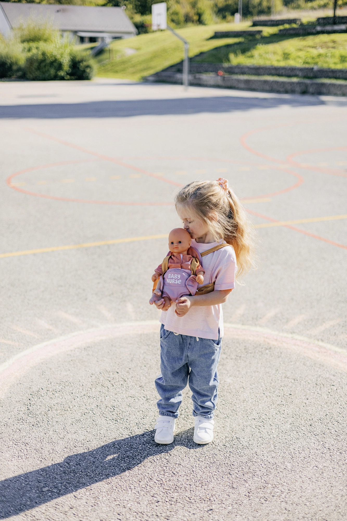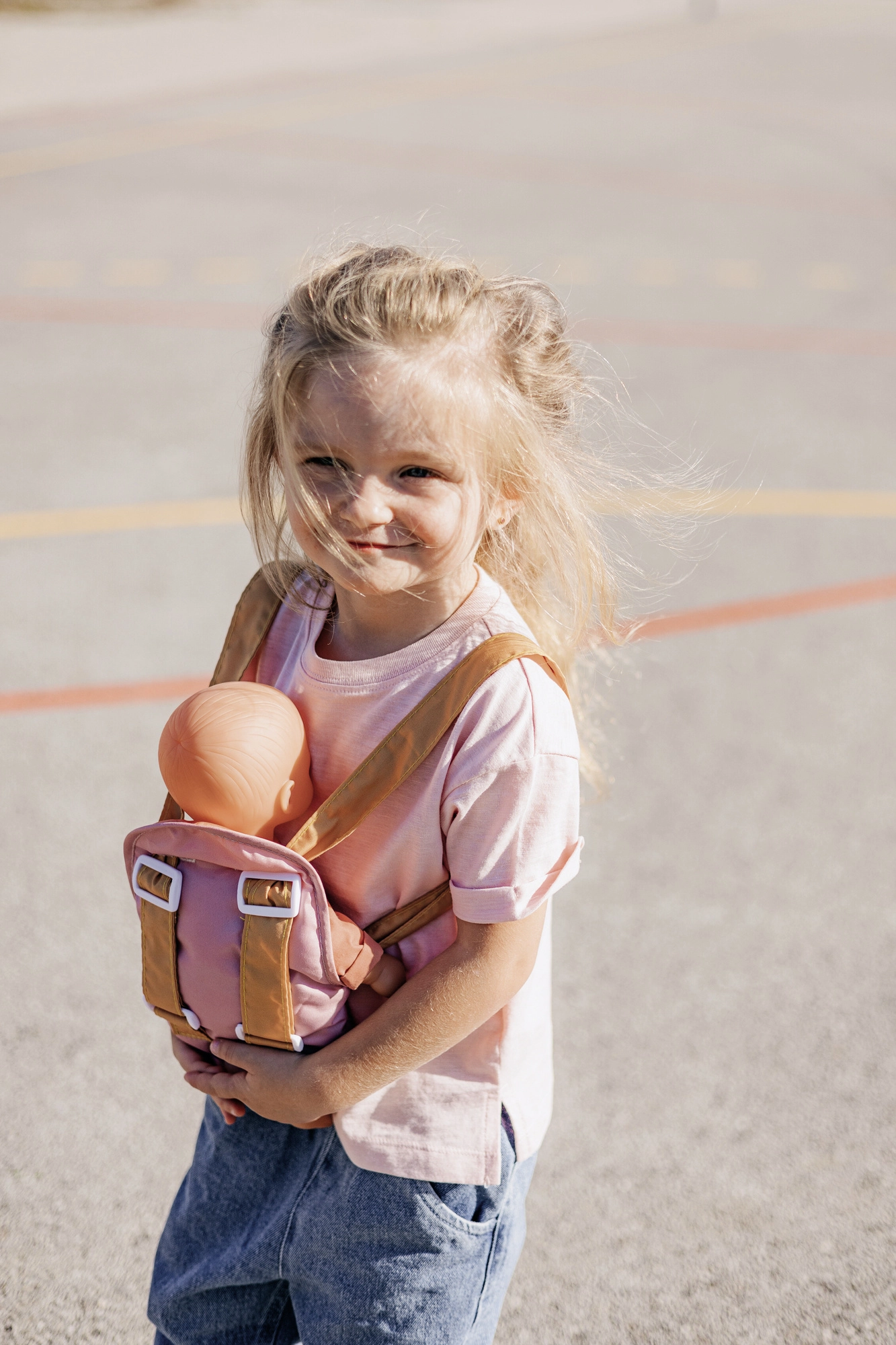 El portabebés se ajusta fácilmente a la complexión del niño gracias a los tirantes ajustables. La combinación pastel de rosa y ocre resulta delicada y moderna, por lo que complementa perfectamente el equipo para muñecas BABY NURSE.