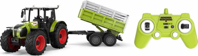 Disfruta de una diversión agrícola realista con el modelo de tractor Claas con remolque por control remoto de 43,6 cm de longitud. Su construcción estable, manejo sencillo y diseño detallado encantarán a pequeños y grandes aficionados a la tecnología.
