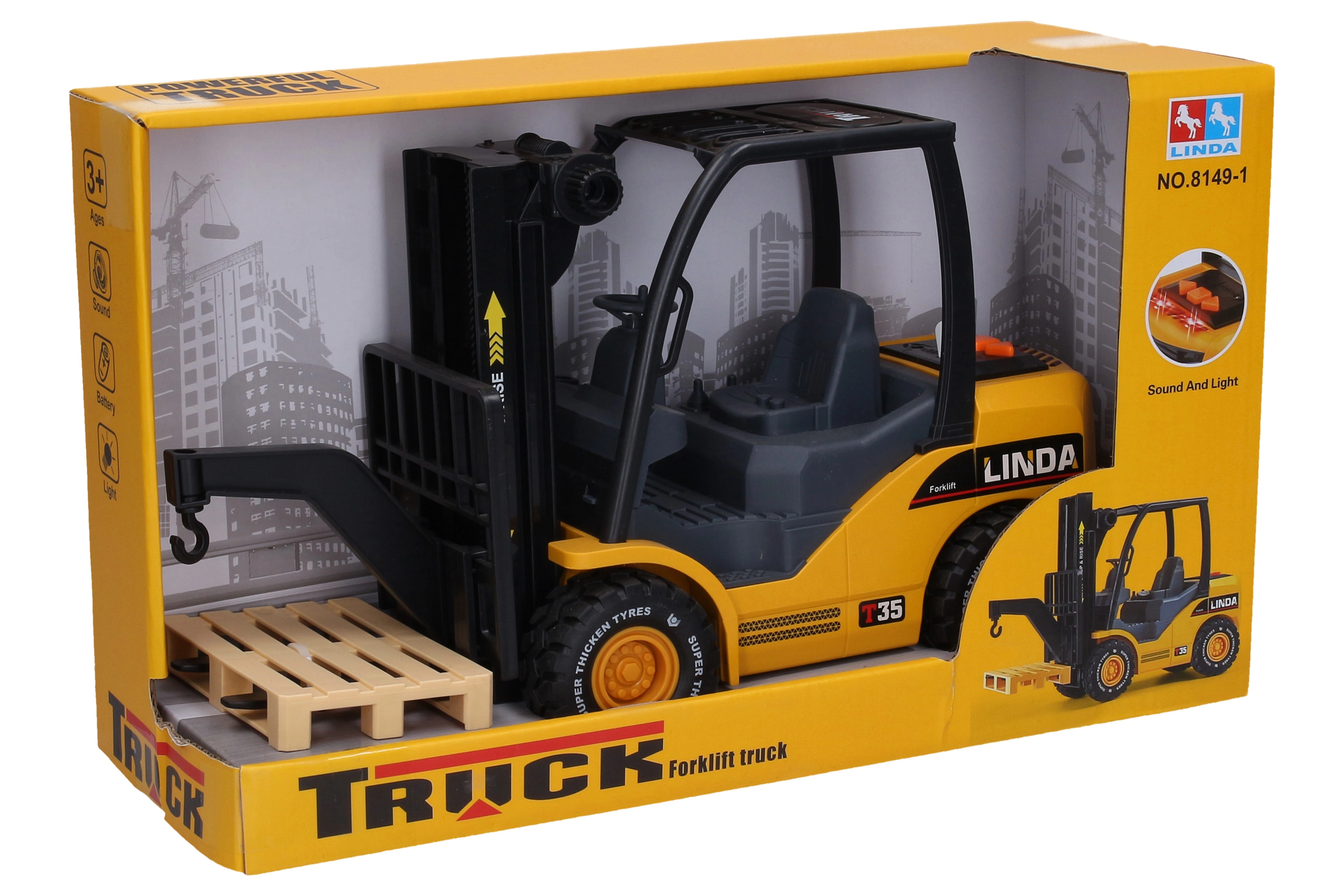 Esta carretilla elevadora detallada encantará a los pequeños aficionados a las máquinas de construcción y almacén. Gracias a los efectos de luz y sonido (motor, elevación, bocina) y a la elevación manual con la rueda frontal, ofrece un juego muy realista. La activación de los efectos se realiza con botones en la parte trasera, para que los niños lo tengan todo al alcance.