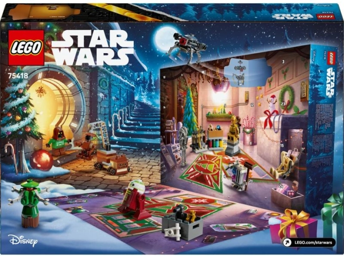 Una variada colección de micromodelos, droides y accesorios festivos con elementos móviles ofrece diversión durante todo el Adviento y combina con el resto de tu colección LEGO Star Wars.