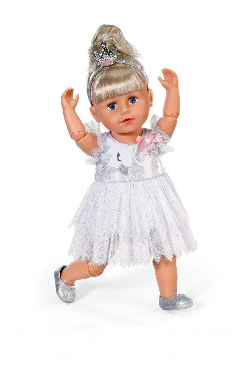 Ilumina cada actuación de danza con el set de ballet BABY born para muñecas de 43 cm. Incluye un tutú blanco brillante con motivo de cisne y un lazo, zapatitos de ballet plateados y una corona para un look perfectamente mágico. Un gran complemento para un juego creativo y duradero, compatible también con BABY born Teddy.