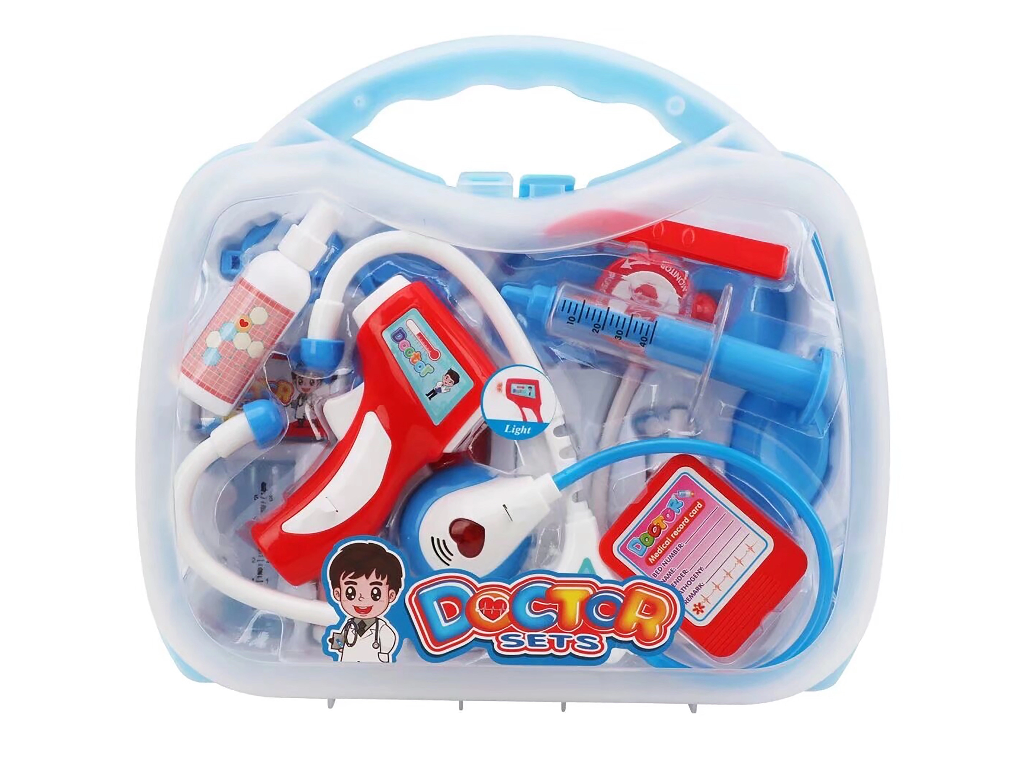 Divertido y seguro maletín de doctor para niños de 30 cm que incluye todo lo necesario para jugar a los médicos: fonendoscopio, termómetro, jeringa, pinzas y otros accesorios. Incorpora efectos de luz y pilas 4× AG10 para una diversión inmediata.