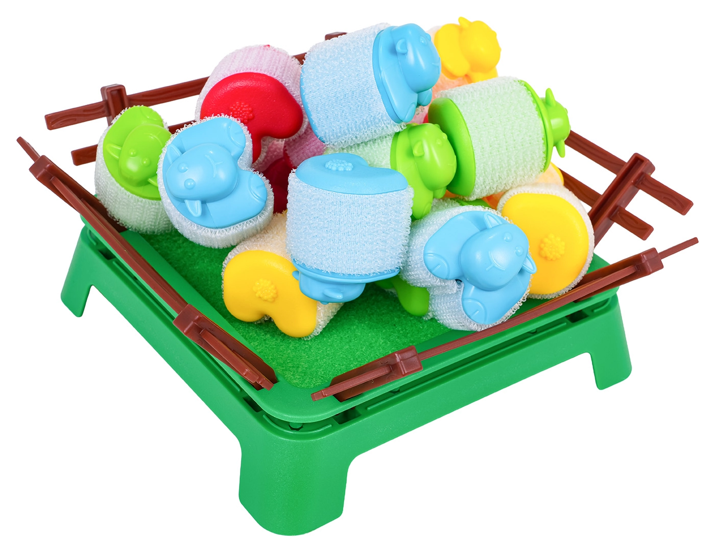 Divertido juego de destreza familiar para niños a partir de 4 años, en el que los jugadores intentan meter sus ovejitas en el corral usando pequeños lanzadores. El juego desarrolla la motricidad fina, la coordinación mano–ojo y los reflejos rápidos. Las piezas de colores con superficie suave están hechas de materiales seguros y, gracias al velcro, las ovejitas pueden apilarse en torrecitas divertidas.