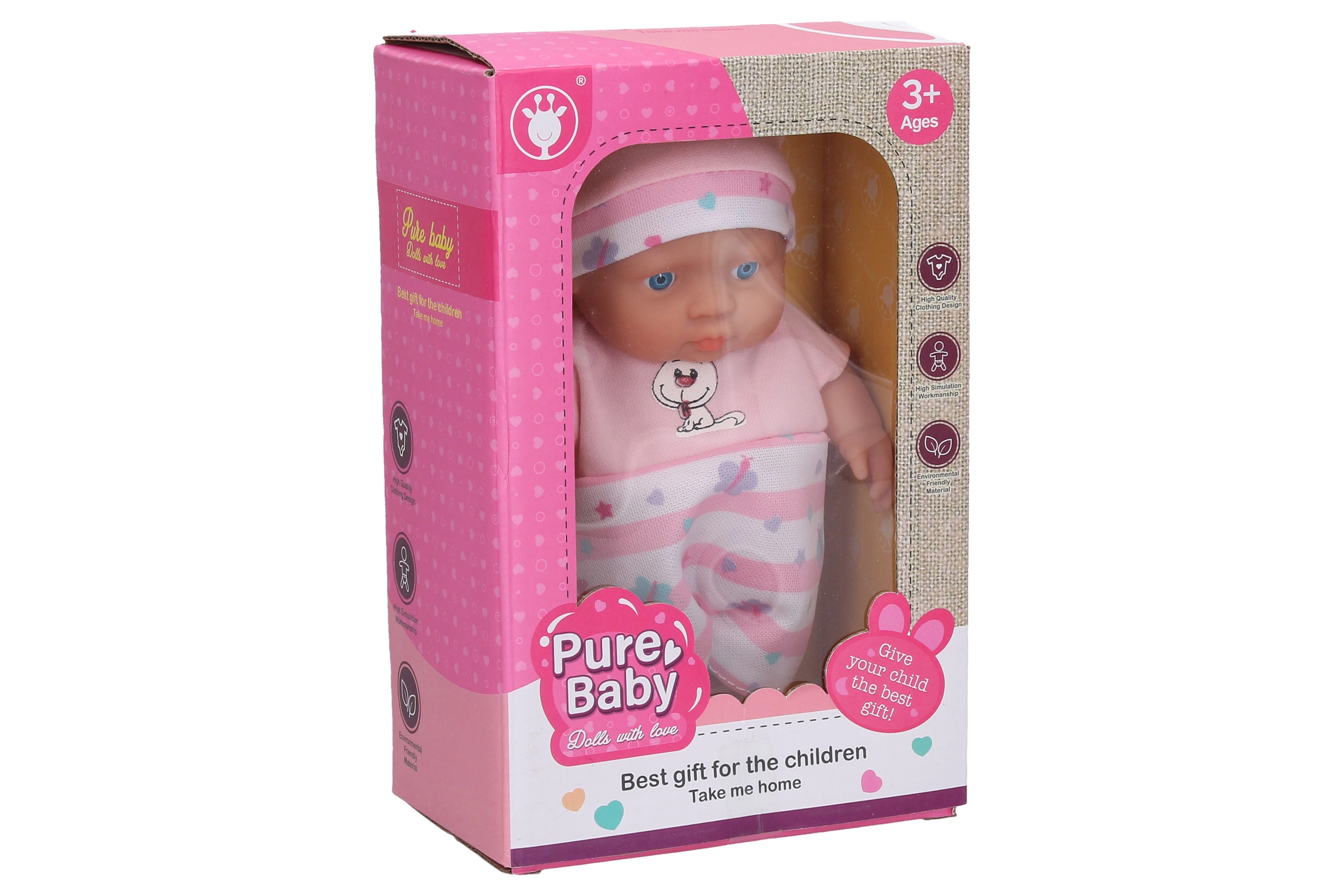 Esta pequeña muñeca bebé en color rosa es una gran elección para el juego diario. Gracias a su práctico tamaño de 18 cm, cabe fácilmente en la mochila infantil, el cochecito o la camita. Favorece el desarrollo de la imaginación, las habilidades sociales y la motricidad fina.