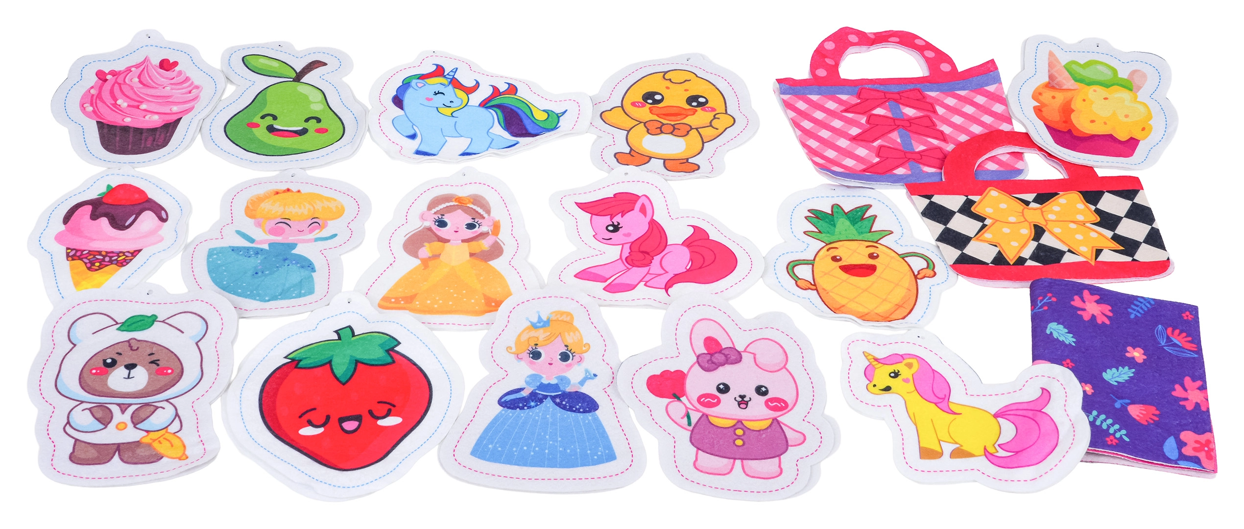 El set incluye plantillas de fieltro para bolsitas, piezas textiles, plantillas para fabricar adornos de peluche, relleno, cadenas de bolitas y tijeras: todo lo que los niños necesitan para crear sus propios complementos y encantadores llaveros. El juego fomenta las habilidades de coordinación, la paciencia y la creatividad.