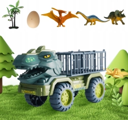 El transportador con forma de dinosaurio de la marca Woopie une el mundo de las criaturas prehistóricas con el de las potentes máquinas. Su aspecto realista con textura de “piel”, cresta, garras y la llamativa mandíbula del T‑REX cautivará a los niños. Las jaulas abatibles y la amplia plataforma de carga invitan a organizar el contenido y crear escenarios llenos de acción.