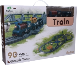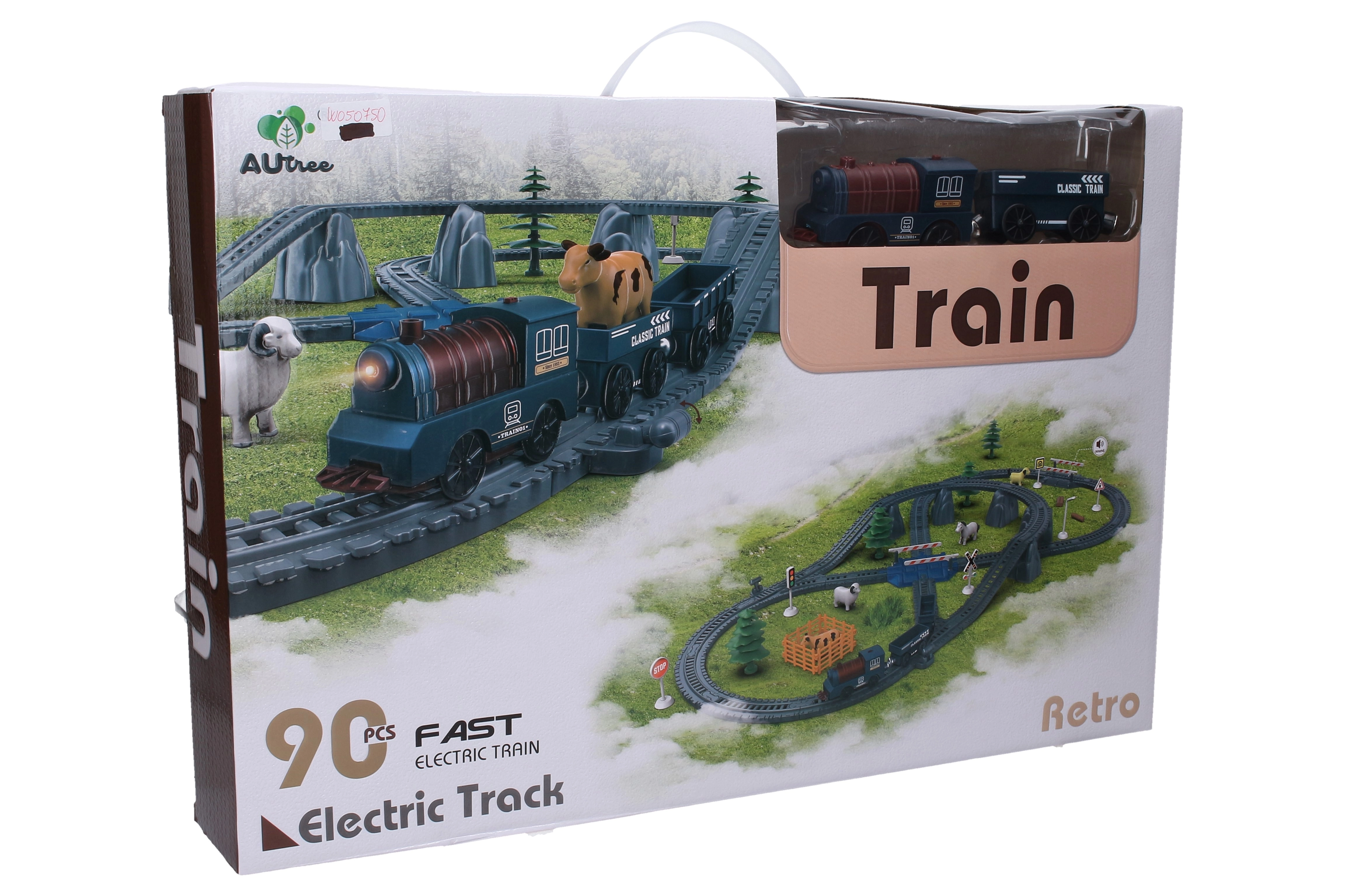 Divertida pista de tren con dimensiones de 112 × 61 × 7,5 cm que encantará a los pequeños amantes de los trenes. El set de 90 piezas ofrece conexión de vagones mediante imanes, efectos de sonido y control sencillo de la dirección de marcha con un interruptor en la locomotora. La batería 1× CR2032 (3 V) está incluida, la locomotora requiere 1× AA (1,5 V), no incluida.