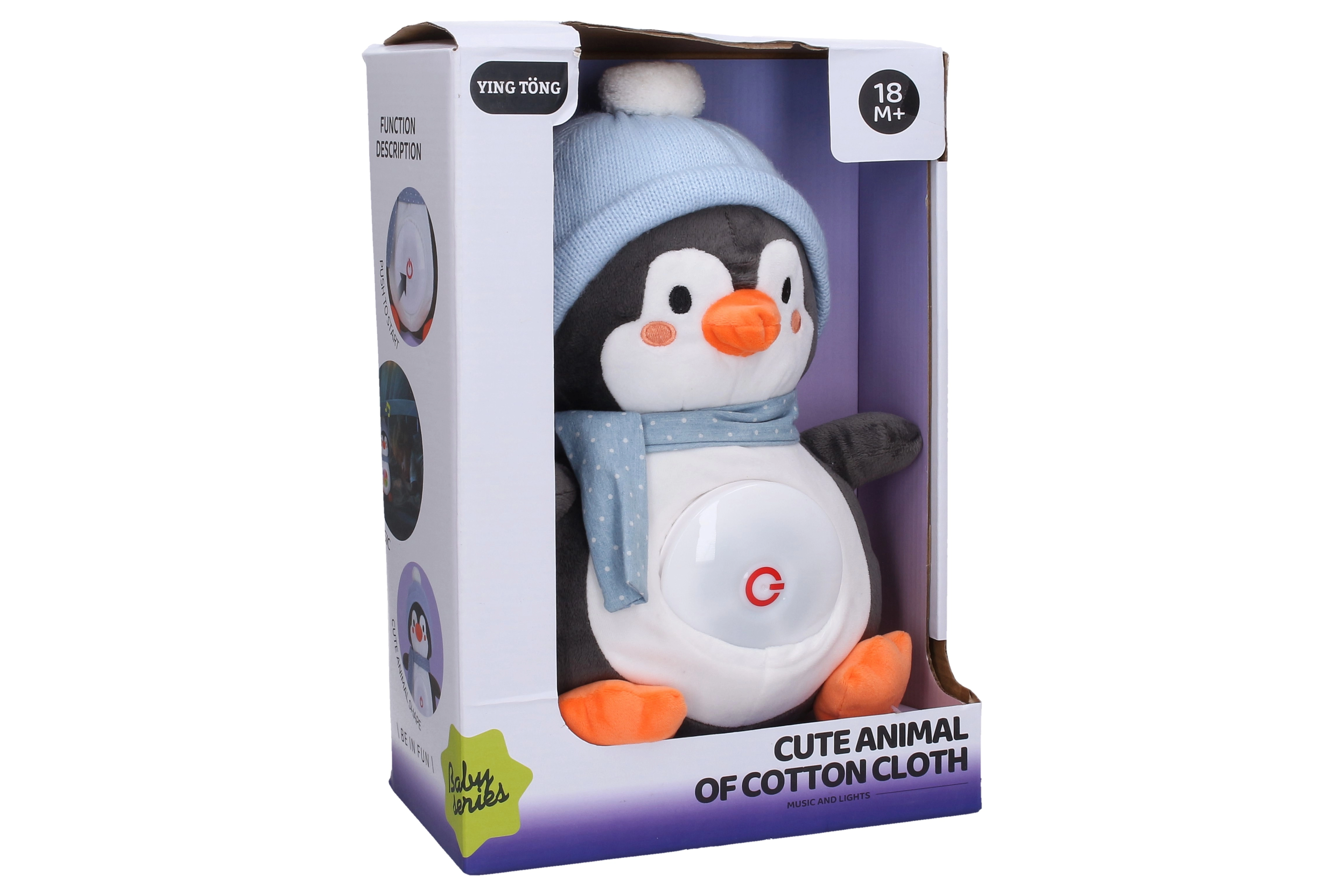 Este suave pingüino para dormir crea un ambiente agradable para conciliar el sueño. La barriguita del juguete cambia de color suavemente durante la reproducción, lo que aporta sensación de seguridad y calma a los niños. Gracias al control intuitivo en la barriguita, puedes iniciar y cambiar fácilmente una de las 5 melodías.
