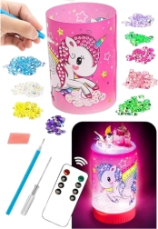 Incluye un kit creativo DIY con pegatinas de diamantes, gracias al cual los niños podrán decorar la lámpara por sí mismos. La personalización fomenta la imaginación, la paciencia y las habilidades manuales, convirtiendo la lámpara en una decoración única y en un accesorio favorito del cuarto.