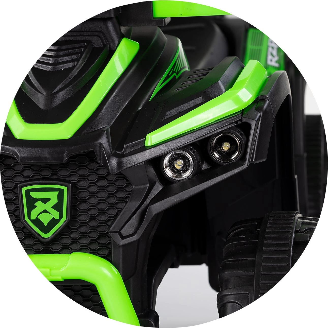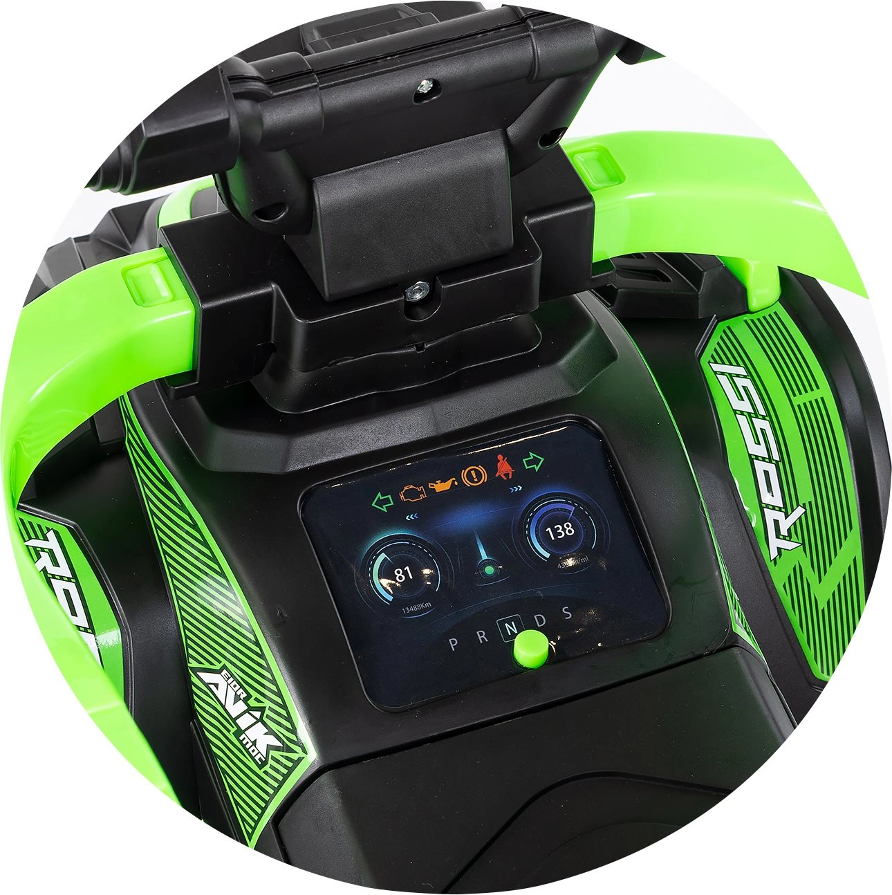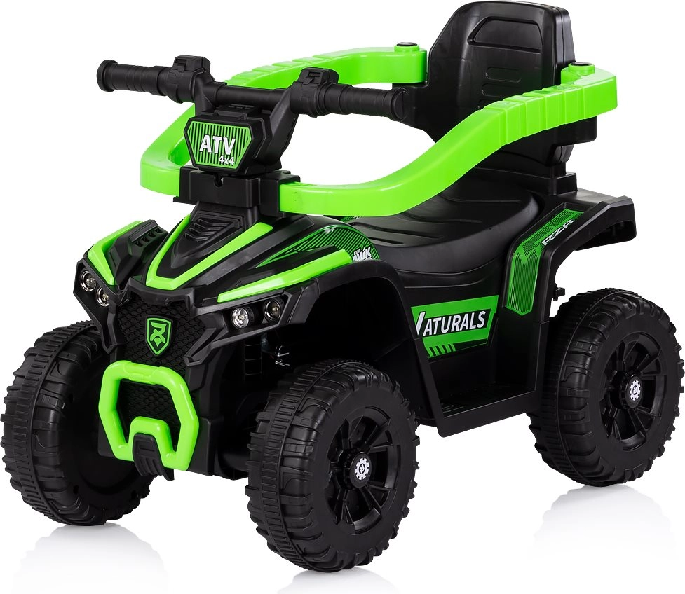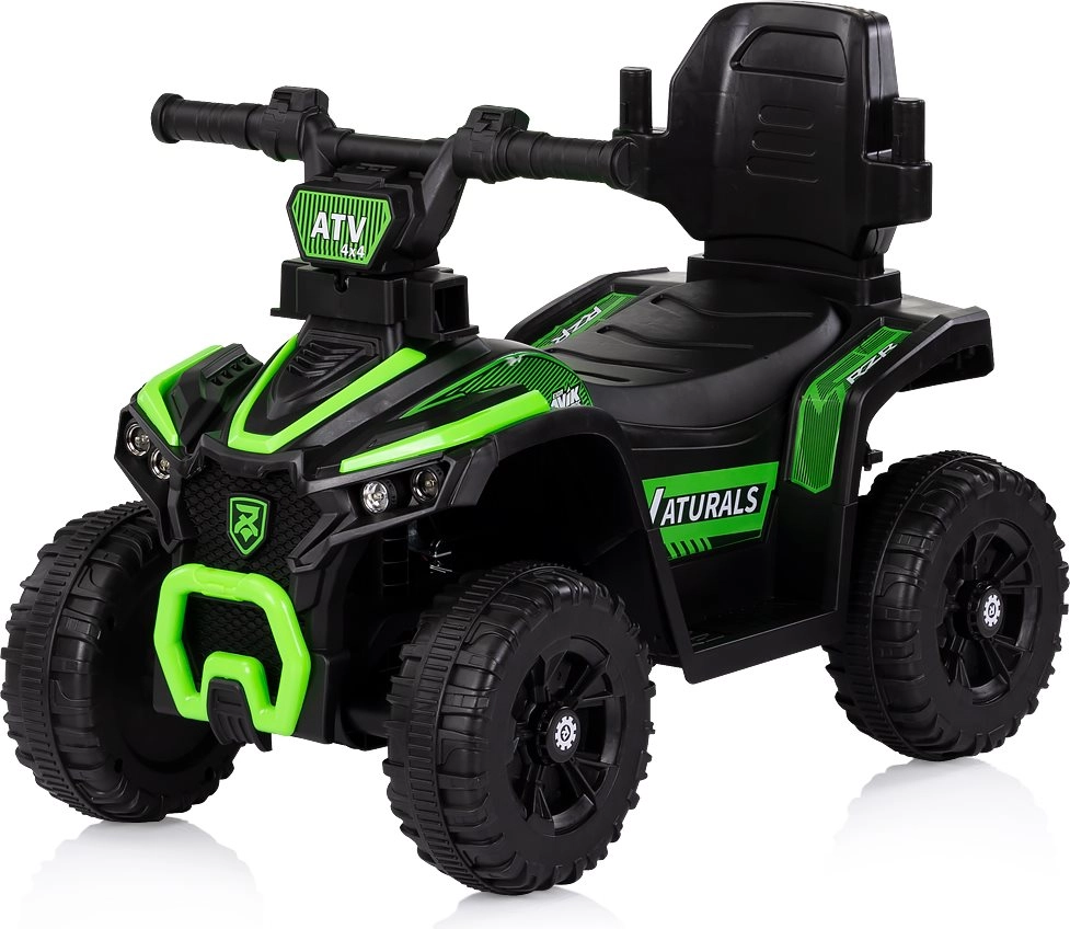 El aspecto deportivo del quad, los efectos de luz y sonido (3× AA, no incluidas) y el control intuitivo en el manillar encantarán a los pequeños conductores.