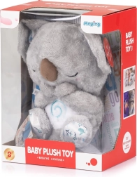 Calma a tu bebé con un suave koala que ofrece “respiración” luminosa, melodías relajantes y luz tenue para facilitar el sueño. Ligero y seguro, este peluche es ideal para casa y para viajes, funciona con pilas y cuenta con un compartimento de baterías de cierre seguro.