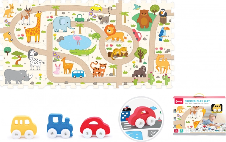 Descubre un juego divertido y seguro con este set de bloques blandos y un coche safari. El set incluye 8 bloques blandos de 31,5 × 31,5 × 1 cm y un coche con ruedas de libre giro, que fomenta la creatividad, la motricidad y un juego seguro en casa o en la guardería.