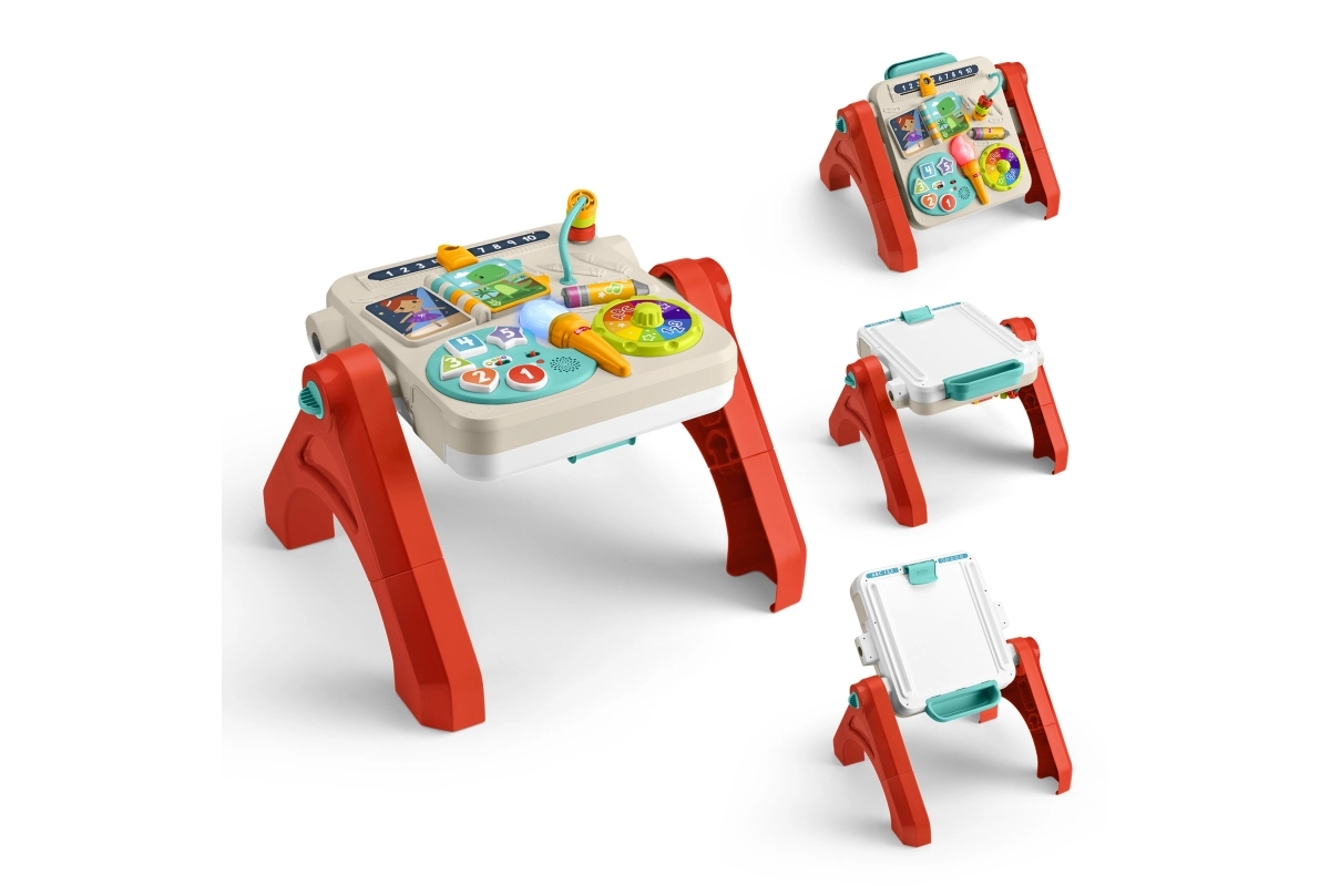 Descubre la versátil mesa de juego 4 en 1 que crece con tu bebé, desde sentarse hasta ponerse de pie y crear por sí mismo. El panel interactivo enseña números, colores y formas, ofrece más de 125 sonidos, frases y canciones y el sistema Smart Stages para adaptar el contenido a la edad. Gracias a las patas plegables y al modo de caballete de pie con clip para papel y compartimento para útiles, fomenta las habilidades musicales, sensoriales y artísticas desde los 6 meses.