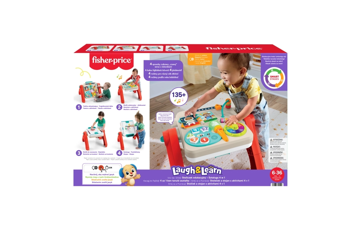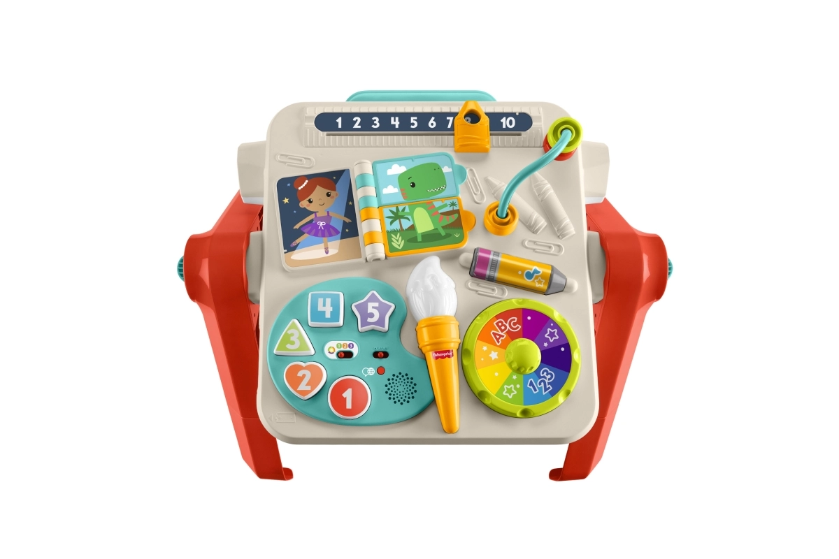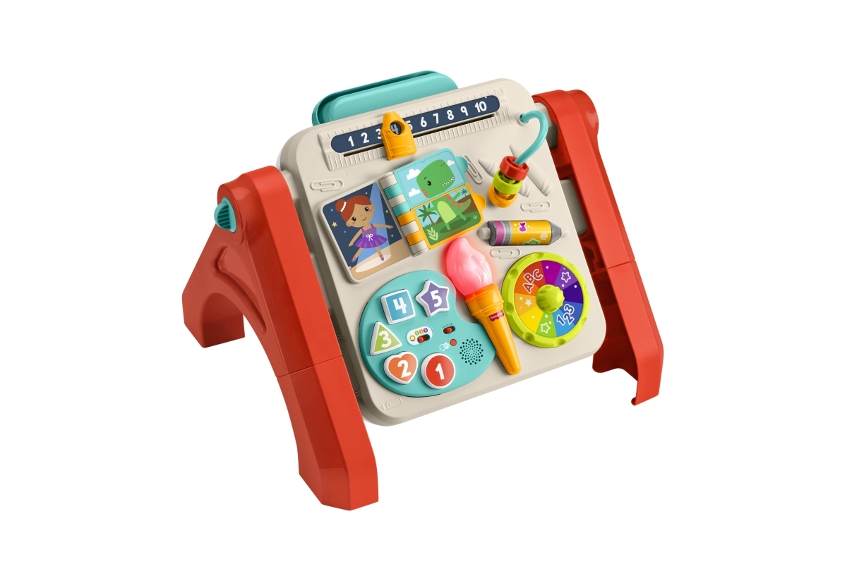 La mesa interactiva FISHER-PRICE 4 en 1 ofrece aprendizaje inteligente mediante el juego en cada etapa del desarrollo. Los peques se divertirán con la paleta de “artista” que enseña números, colores y formas, la rueda de colores con música giratoria, el libro giratorio, la barra de cuentas y el spinner para desarrollar la motricidad fina. Los modos Smart Stages se ajustan fácilmente a la edad y los progresos del niño.