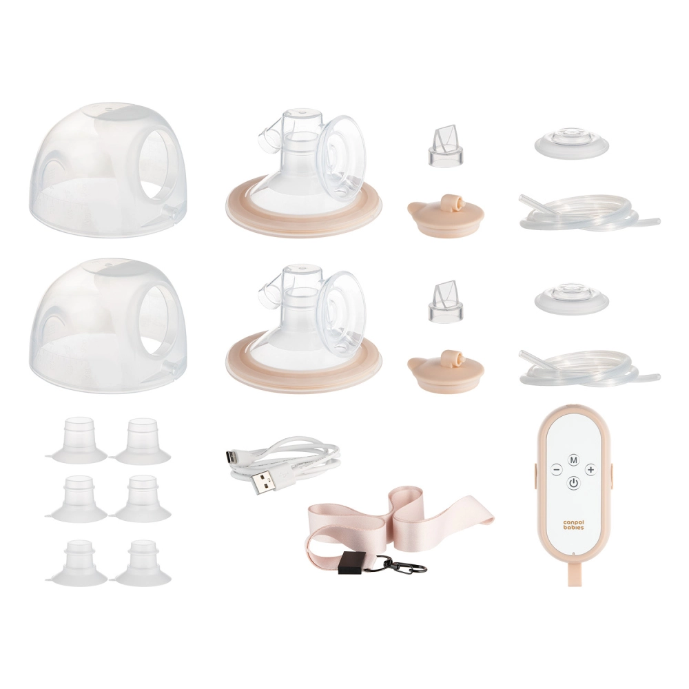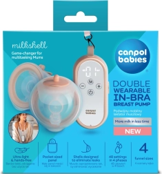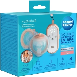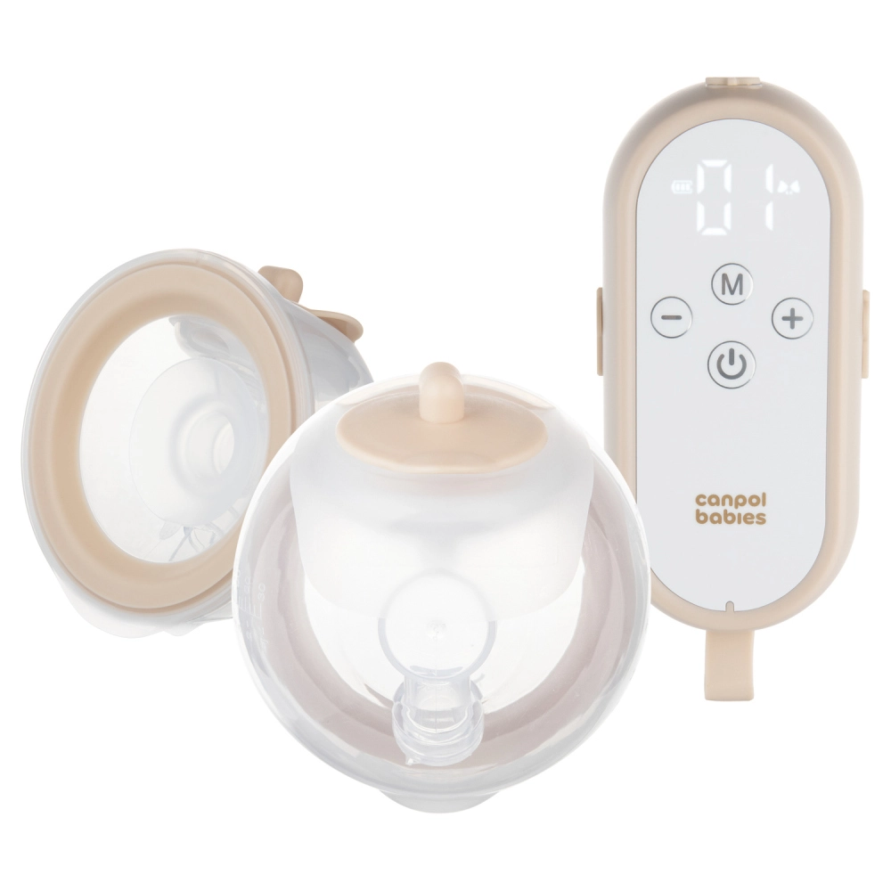 Canpol babies MilkShell es un moderno sacaleches doble inalámbrico para sujetador, diseñado para una extracción cómoda, discreta y eficaz. Los ligerísimos recipientes colectores (180 ml cada uno) con embudo suave se ajustan a la perfección dentro del sujetador, para que puedas extraer con las manos libres en casa o de viaje. La unidad de control con botones claros puede llevarse al cuello gracias a un cordón: todo a mano y listo para usar.