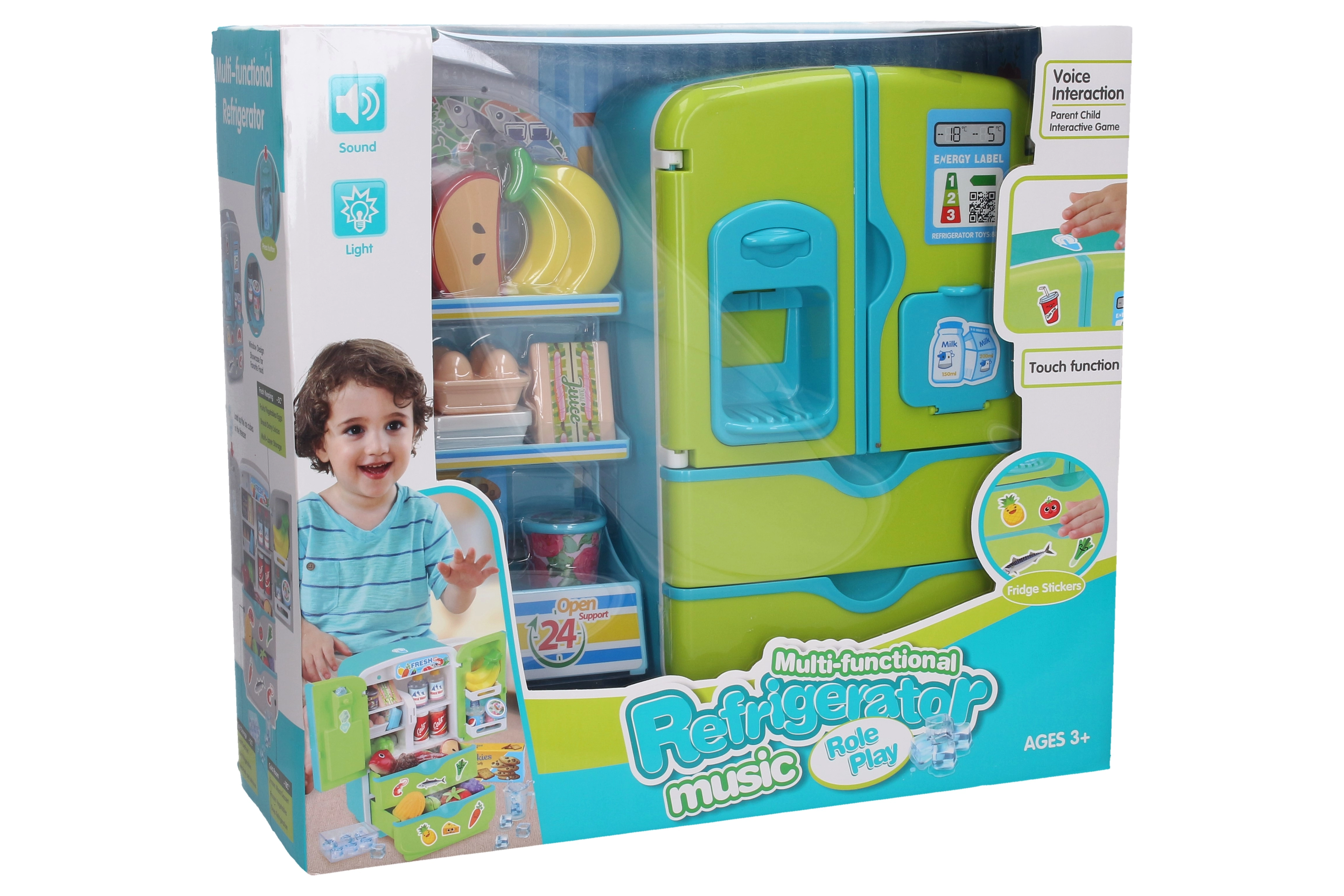Esta nevera infantil con estante adicional y un set de alimentos es un juguete estupendo para desarrollar habilidades sociales y el juego creativo de casa o tienda. Gracias a los efectos realistas, los niños experimentan una sensación auténtica de uso del electrodoméstico, mientras que el control táctil facilita la activación de las funciones.