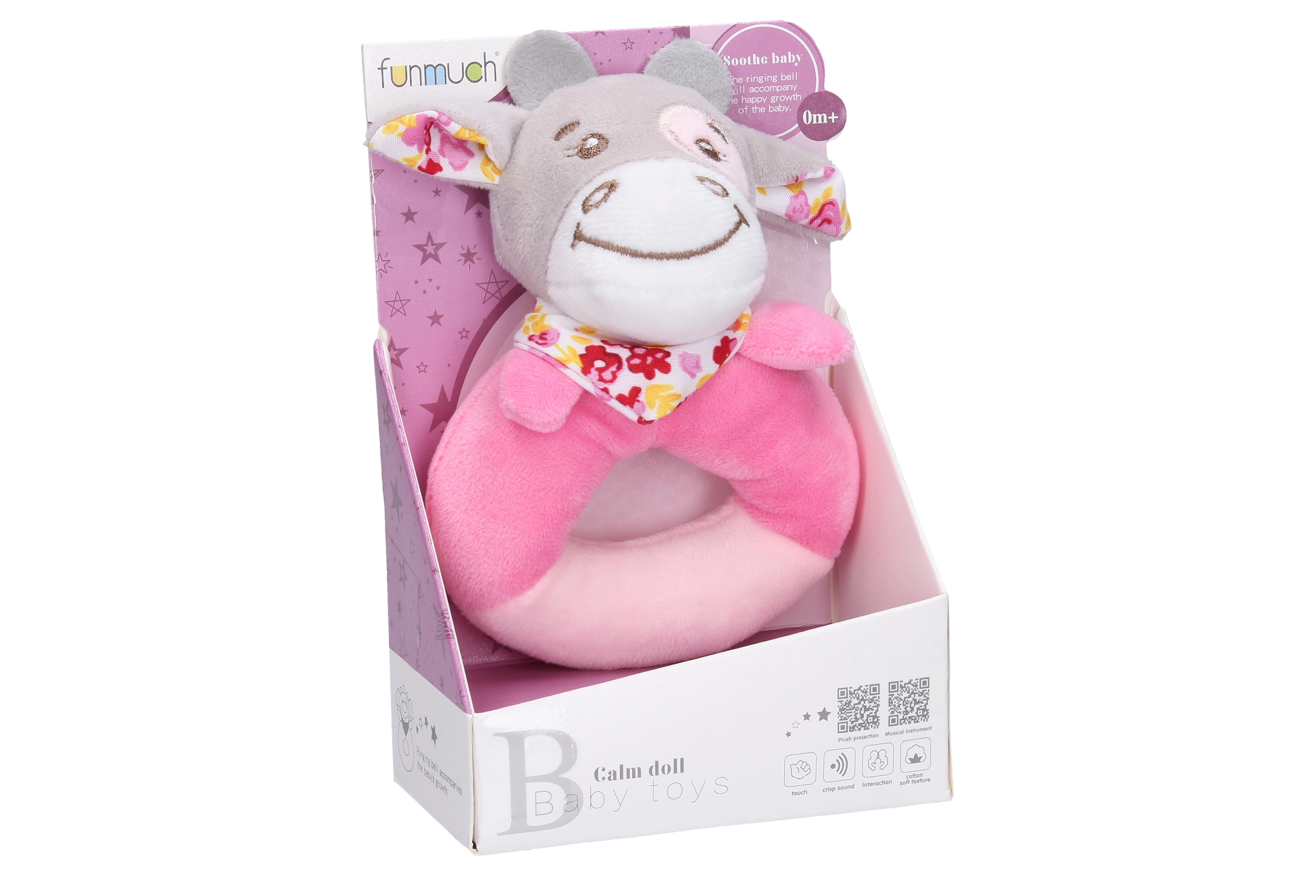 Adorable sonajero de peluche en forma de aro con motivo de vaquita que encantará a los bebés por su suavidad y su agradable sonido. Ideal para los primeros descubrimientos, el agarre y el desarrollo de la motricidad. Peluche suave, fácil de agarrar y suave tintineo que estimulan la percepción sensorial.