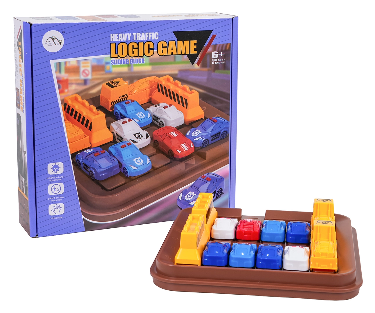 Traffic es un rompecabezas lógico popular en el que los niños resuelven paso a paso un enigma de tráfico. Desplaza los vehículos en el tablero solo hacia adelante y hacia atrás y planifica la mejor ruta para sacar el coche rojo de la trampa de aparcamiento. Ideal para el desarrollo del pensamiento lógico, la planificación estratégica y la paciencia.