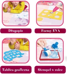 Descubra el dibujo mágico sin desorden con la alfombrilla de agua WOOPIE. El niño dibuja solo con agua usando rotuladores recargables; las imágenes desaparecen por sí solas al cabo de un rato y la alfombrilla queda lista para seguir creando. El gran formato de 98 × 78 cm con motivo de princesas encantará a toda pequeña artista y, al mismo tiempo, desarrolla la creatividad, la motricidad fina y la coordinación ojo‑mano desde los 12 meses.